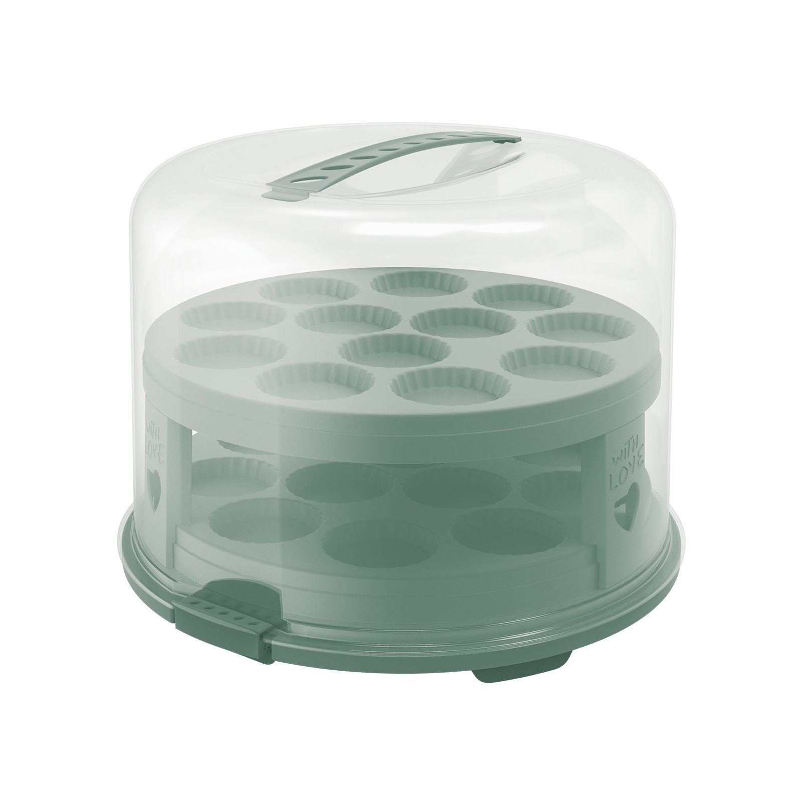 - Bietet Platz für bis zu 24 Muffins oder 1 Kuchen und 12 Muffins