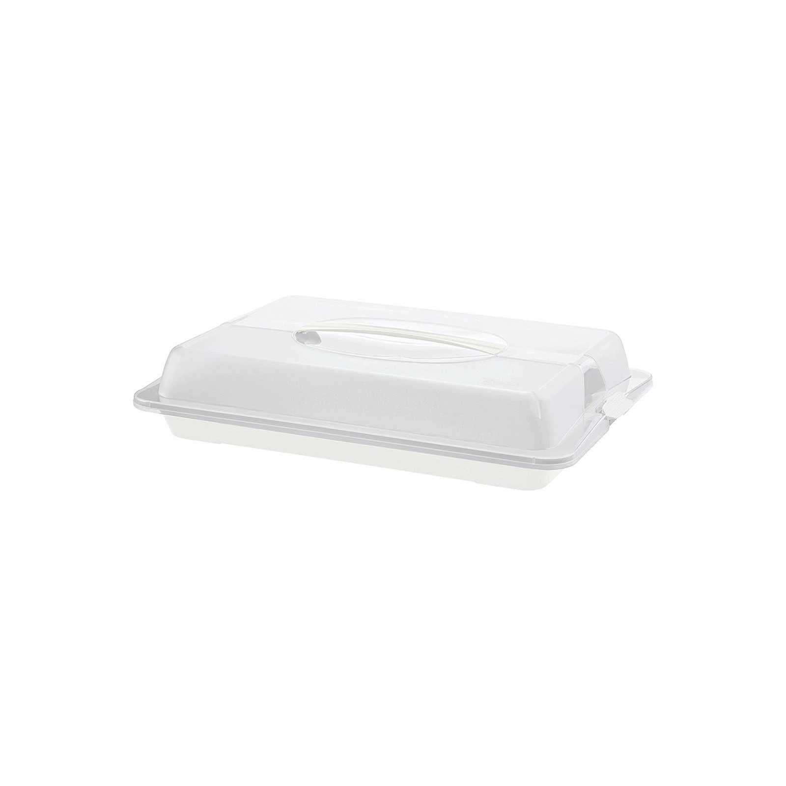 Der Partybutler JOHN ist in mehreren praktischen Größen erhältlich. Er besteht aus pflegeleichtem, spülmaschinenfestem Kunststoff, der selbstverständlich lebensmittelecht und BPA-frei ist. Die transparente Abdeckhaube der Transportbox wird durch zwei seitliche Clips sicher am Unterteil fixiert, der integrierte Tragegriff liegt bequem in der Hand und ermöglicht einen schonenden Transport. Damit Ihre Speisen frisch bleiben, sorgt der Wellenboden für Luftzirkulation. Mehrere Transportboxen können Sie bei Nichtgebrauch platzsparend ineinander stapeln - praktisch für alle, die gerne selbst backen und Ihr Umfeld mit leckeren Snacks und Kuchen verwöhnen.