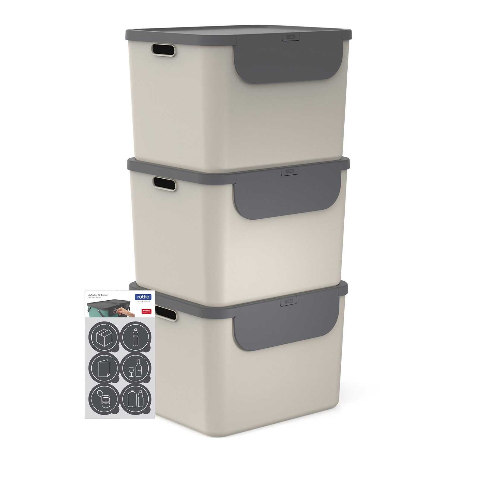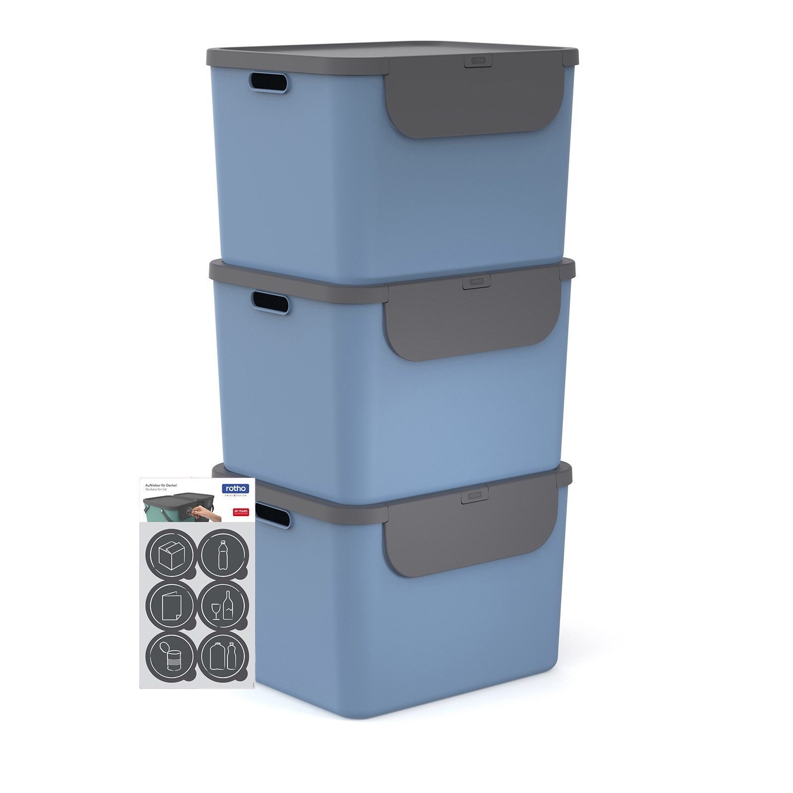 3er-Set Recyclingbehälter / Abfalleimer – je 55 l, gesamt 165 l