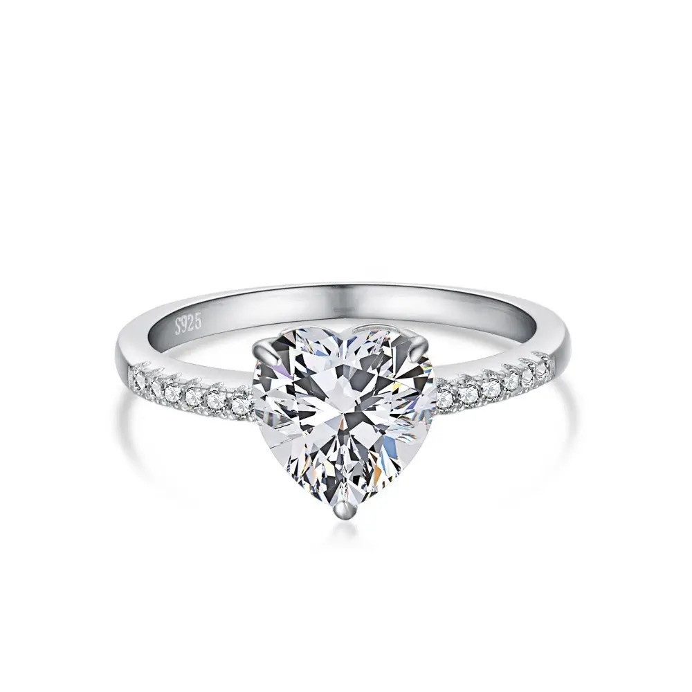 Der Ring ist mit einem funkelnden Moissanit -Stein in Herzform besetzt, der für seine außergewöhnliche Brillanz und seinen diamantähnlichen Glanz bekannt ist.