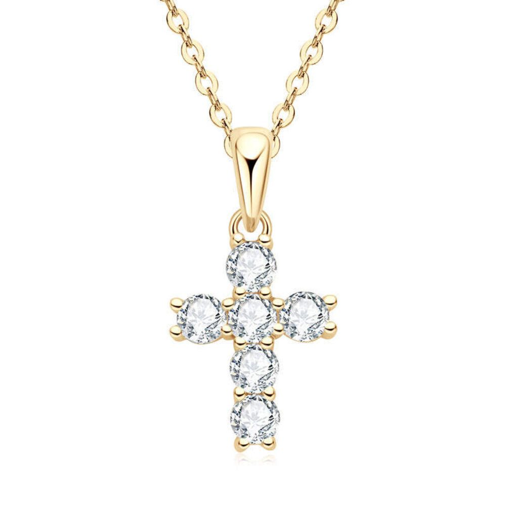 Die funkelnden Moissanit-Steine und das klassische Kreuz-Design machen dieses Schmuckstück zu einem zeitlosen Highlight.