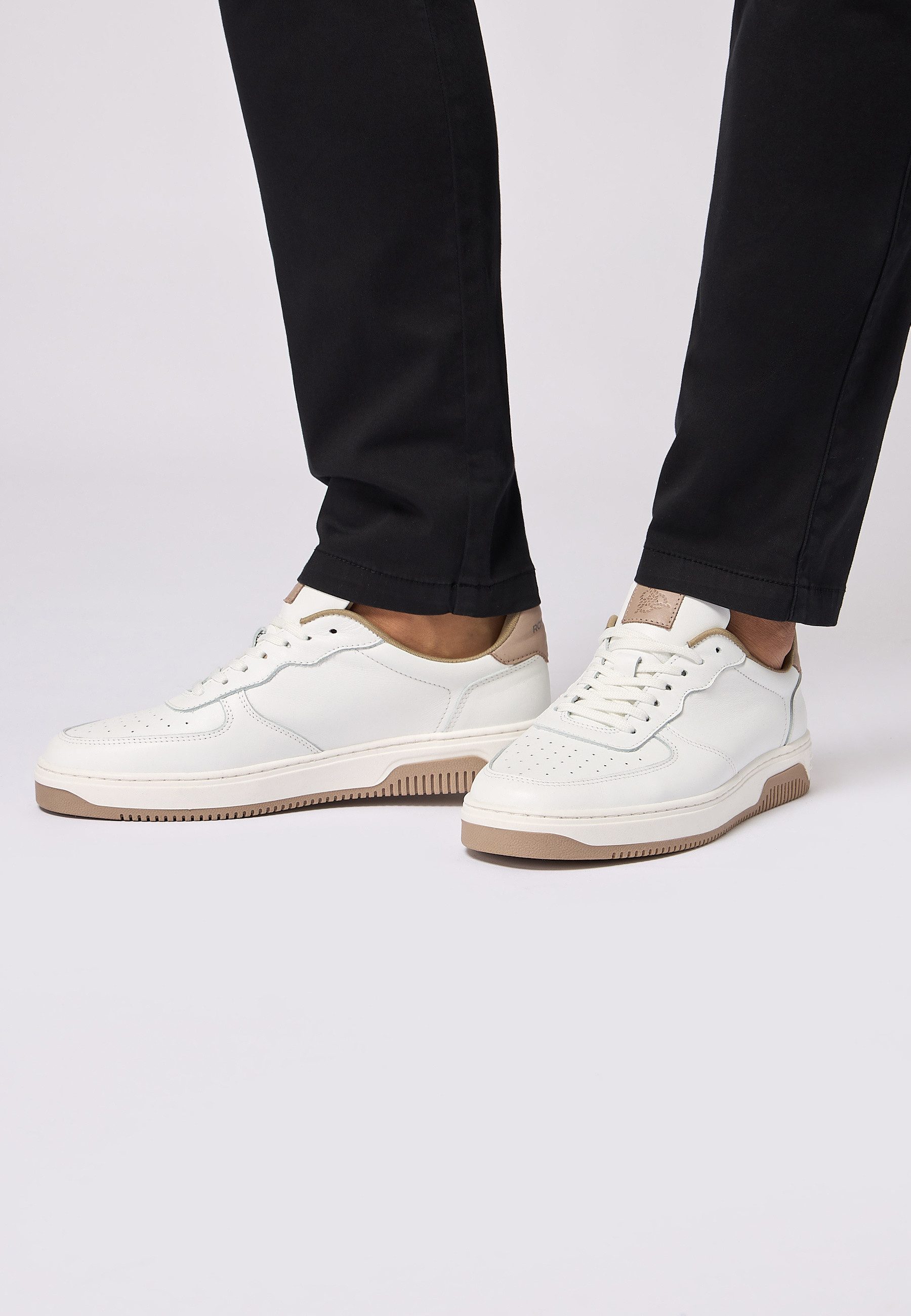 Obermaterial aus hochwertigem weißem Leder für Langlebigkeit und einen edlen Look