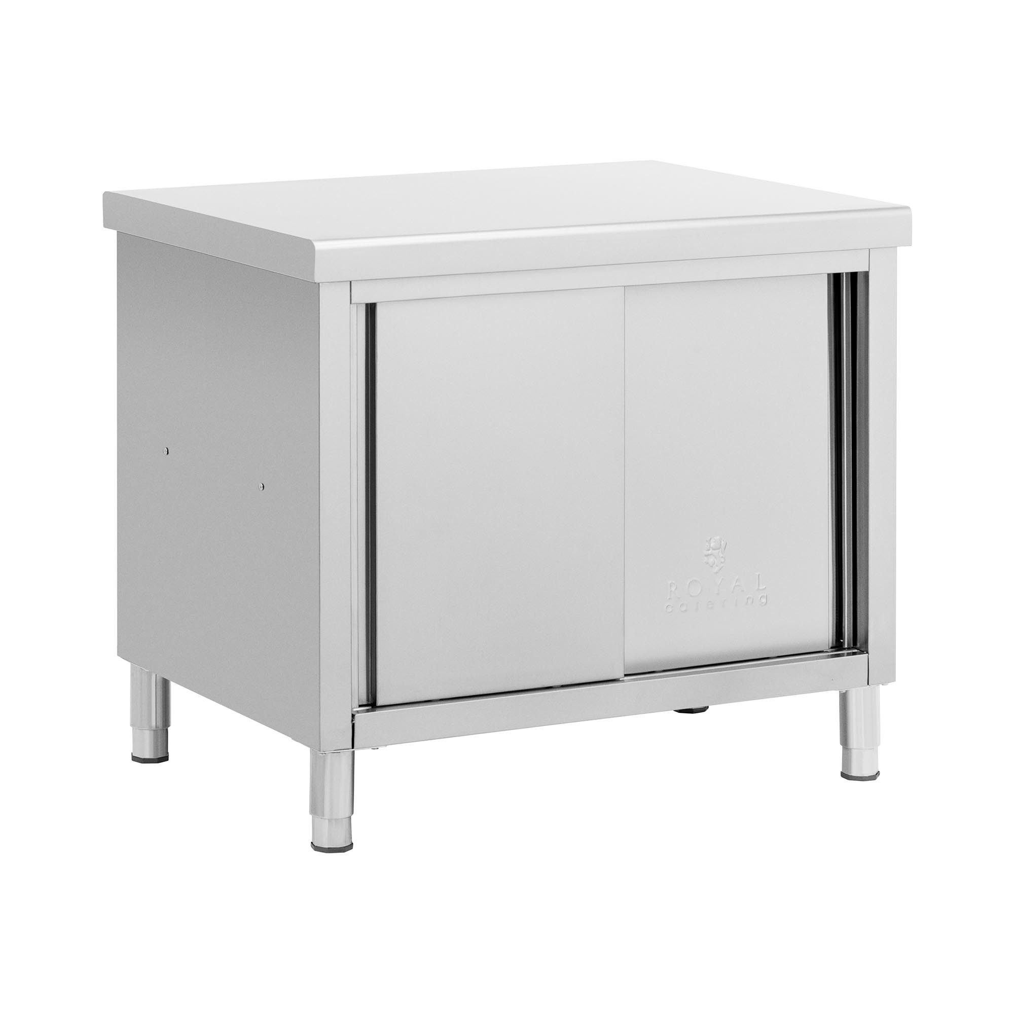 Ob in Restaurant, Kantine, Hotel, Bäckerei, Krankenhaus oder Großküche: Edelstahlmöbel bilden die Grundlage für einen hygienischen Umgang bei der Verarbeitung von Lebensmitteln aller Art. Der Arbeitsschrank mit Durchreiche von Royal Catering gehört in jede professionell eingerichtete Küche und entspricht speziell den hohen Anforderungen in der Gastronomie. Der Durchreicheschrank ermöglicht den schnellen Zugang von beiden Seiten und somit den einfachen Austausch von Küchenutensilien aller Art. Das Modell steht auf stabilen Füßen, die Sie bei unebenen Böden für einen sicheren Stand um bis zu 20 mm anpassen.