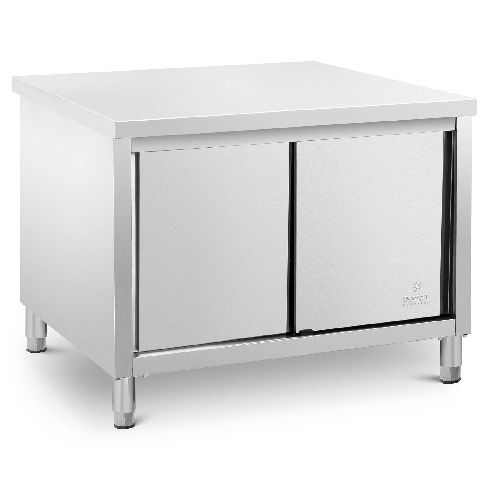 Ob in Restaurant, Kantine, Hotel, Bäckerei, Krankenhaus oder Großküche: Edelstahlmöbel bilden die Grundlage für eine saubere Küche und den hygienischen Umgang mit Lebensmitteln aller Art. Der Arbeitsschrank von Royal Catering gehört in jede professionell eingerichtete Küche und entspricht speziell den hohen Anforderungen in der Gastronomie. Der Schrank steht auf 15 cm hohen Füßen, die Sie bei unebenen Böden um bis zu 20 mm für einen stabilen Stand anpassen.