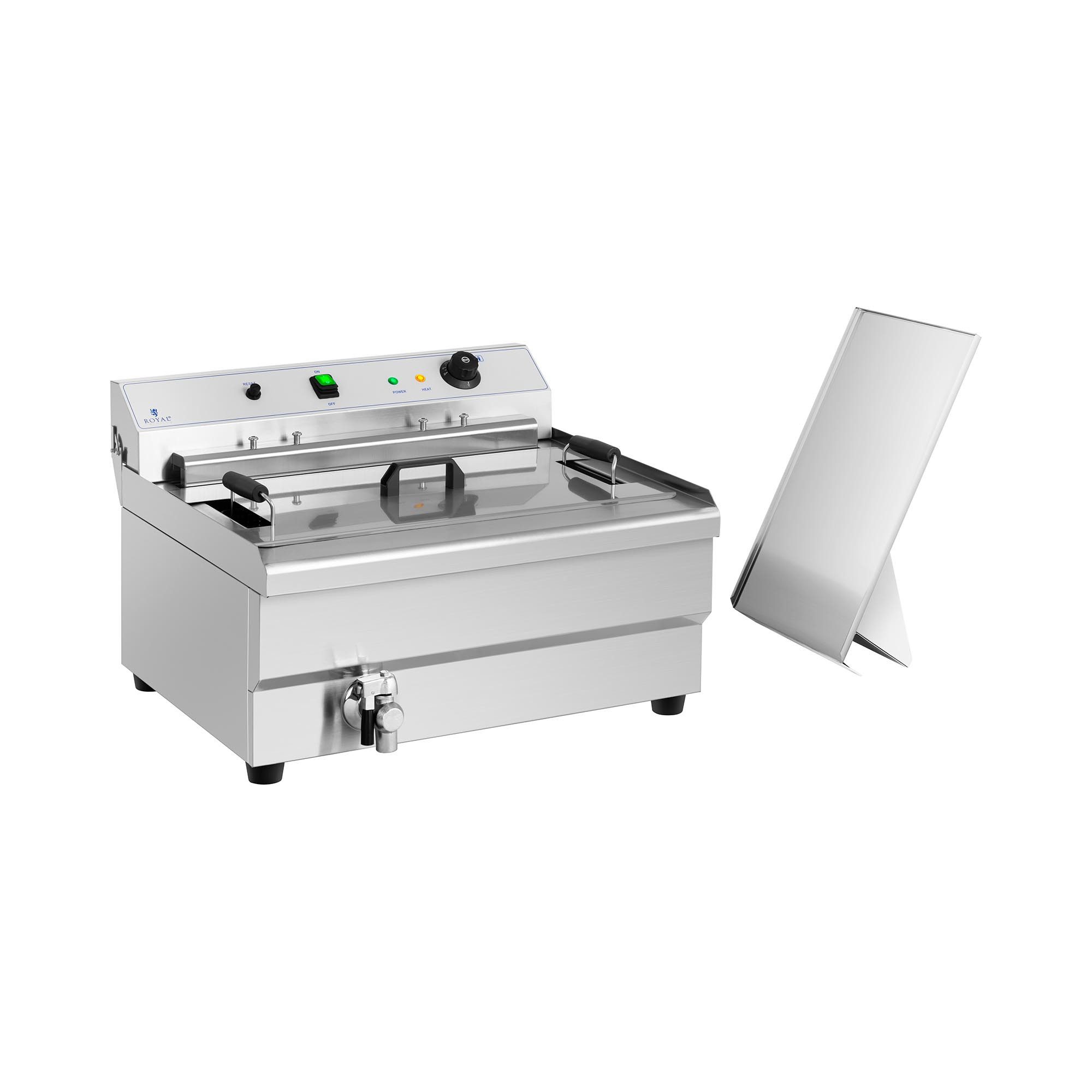 Das Fettbackgerät RCBG-30STHB von Royal Catering wurde für den professionellen Dauereinsatz in Bäckereien, Restaurants, Supermärkten, Snackbars oder Food Trucks konzipiert. Mit 9.000 Watt Leistung und 30 Litern Fassungsvermögen lassen sich neben Berlinern, Donuts und Krapfen auch Pommes, Fisch oder Zwiebelringe in großer Menge perfekt zubereiten. Mit einer Kombination praktischer Extras wie der seitlichen Ablage, der Kaltzonentechnik und einem Ablasshahn bietet dieses Gerät aus Edelstahl eine komfortablere Bedienung als zahlreiche andere Fettbackgeräte. Royal Catering, der Online-Fachhändler für Gastronomiebedarf und Kochgeräte, steht auch bei diesem Produkt für durchdachte Funktionalität, einfache Bedienung und Wartung sowie praktisches Design.