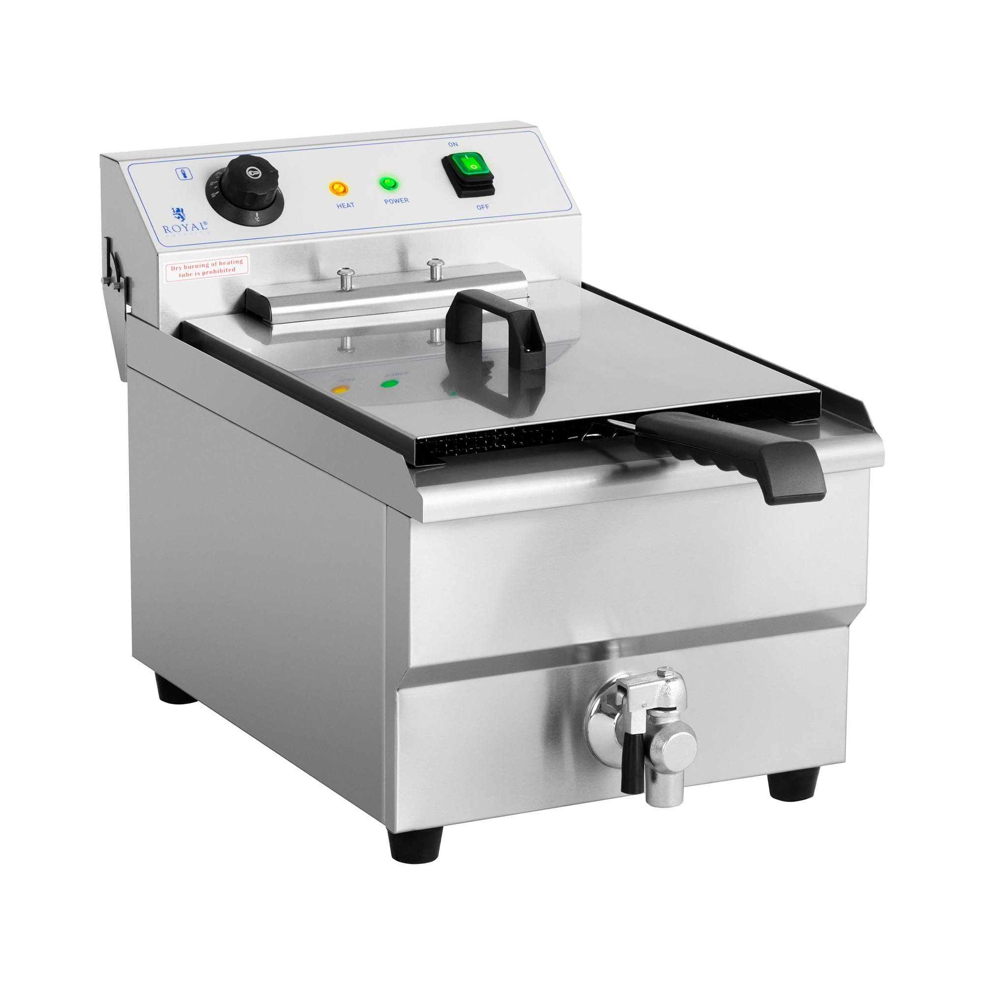 Mit der Elektro-Fritteuse RCEF-16EHB von Royal Catering sind Sie bestens aufgestellt. Die Behälterkapazität von 16 Litern und 6.000 Watt Leistung machen das Gerät ideal für den professionellen Einsatz in Restaurants, Imbissen oder Foodtrucks. Royal Catering, der Onlinefachhändler für Gastronomiebedarf und Kochgeräte, steht auch bei Fritteusen für durchdachte Funktionalität, einfache Bedienung und Wartung sowie praktisches Design.