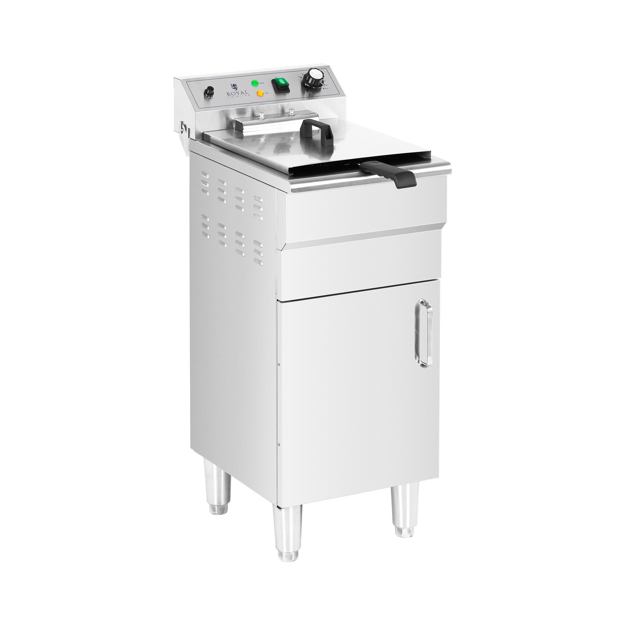 Mit der Elektro-Fritteuse RCPKF 13DSH und dem geräumigen Unterschrank sind Sie bestens aufgestellt. Die Behälterkapazität von 13 l und 5.000 W Leistung machen das Gerät ideal für den professionellen Einsatz in Restaurants, Imbissen oder Foodtrucks. Royal Catering, der Onlinefachhändler für Gastronomiebedarf und Kochgeräte, steht auch bei Fritteusen für durchdachte Funktionalität, einfache Bedienung und Wartung sowie praktisches Design.