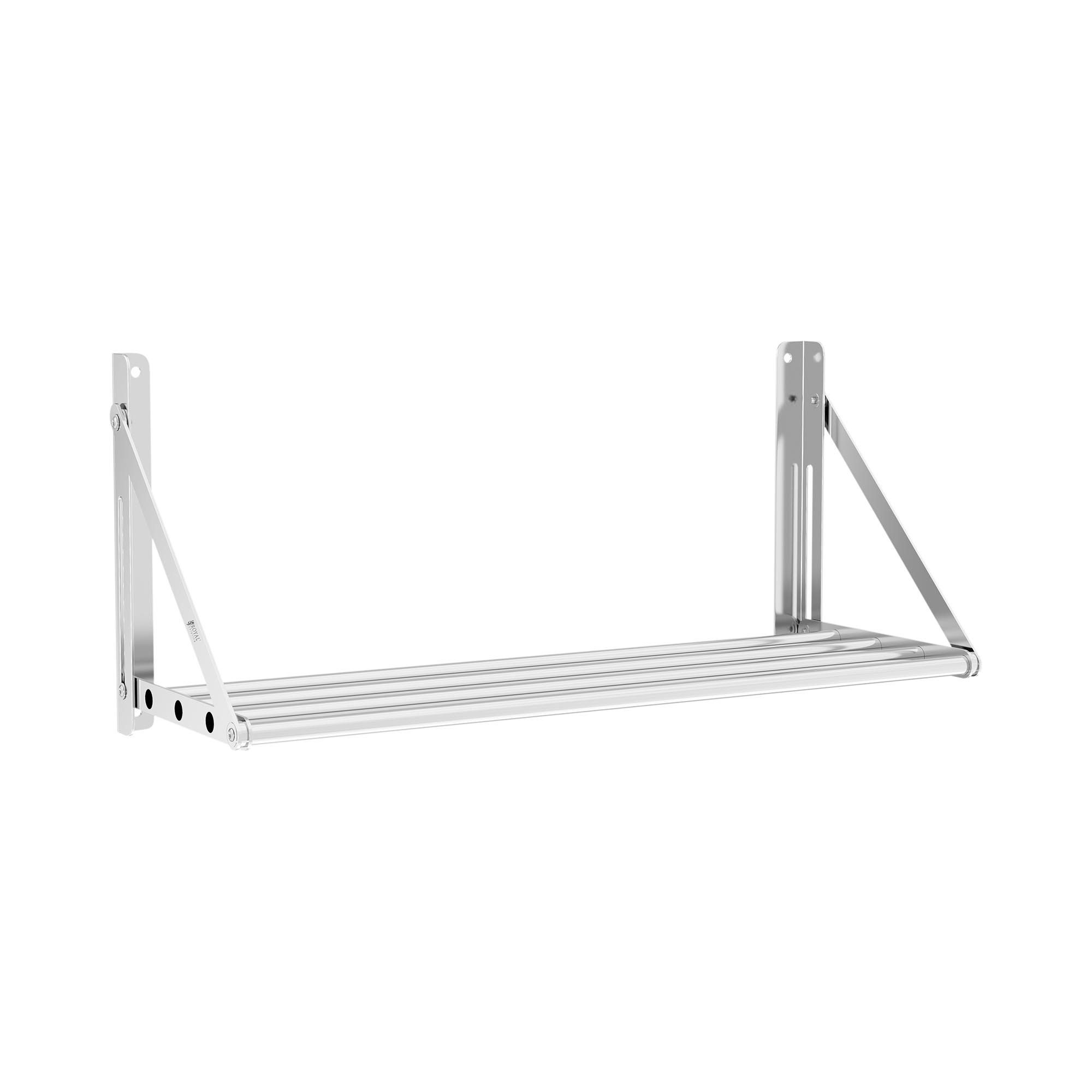 Das geräumige Küchenregal Edelstahl hat eine große Ablagefläche aus Stangen mit den Maßen 80 x 30 cm und garantiert so jede Menge Stauraum: ob in Hotel, Restaurant oder in der heimischen Küche. Das Wandregal Edelstahl ist mit einem Gewicht von bis zu 40 kg belastbar und könnte sogar Küchengeräte wie etwa einen Mikrowellenherd tragen. Darüber hinaus erweist sich die Regalablage aus Stangen als äußerst praktisch, wenn man Koch- oder Schöpflöffel griffbereit in die Küche hängen will. Durch das offene Design des Regals ist der Zugriff auf die gelagerten Waren jederzeit problemlos möglich.