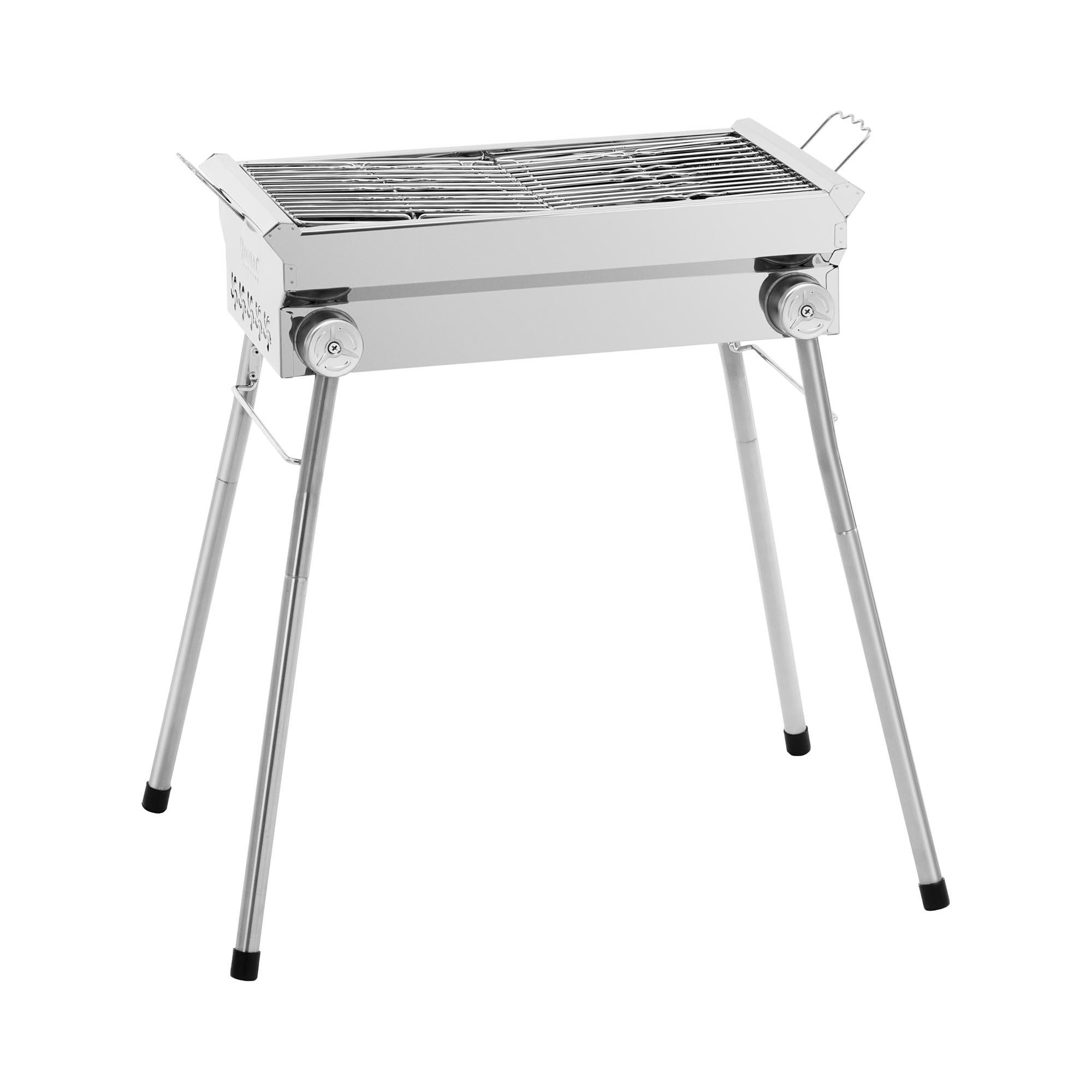 Den kompakten Klappgrill bauen Sie im Handumdrehen auf. Er benötigt nur wenig Stellfläche. Auf dem 43 x 25 cm großen Rost garen Sie bequem Fleisch, Gemüse und Co. Da es sich um einen Holzkohlegrill handelt, grillen Sie mit höheren Temperaturen als beispielsweise mit einem Gasgrill. Außerdem verleihen Sie Ihrem Grillgut reichlich Röstaromen und den typisch rauchigen Geschmack.