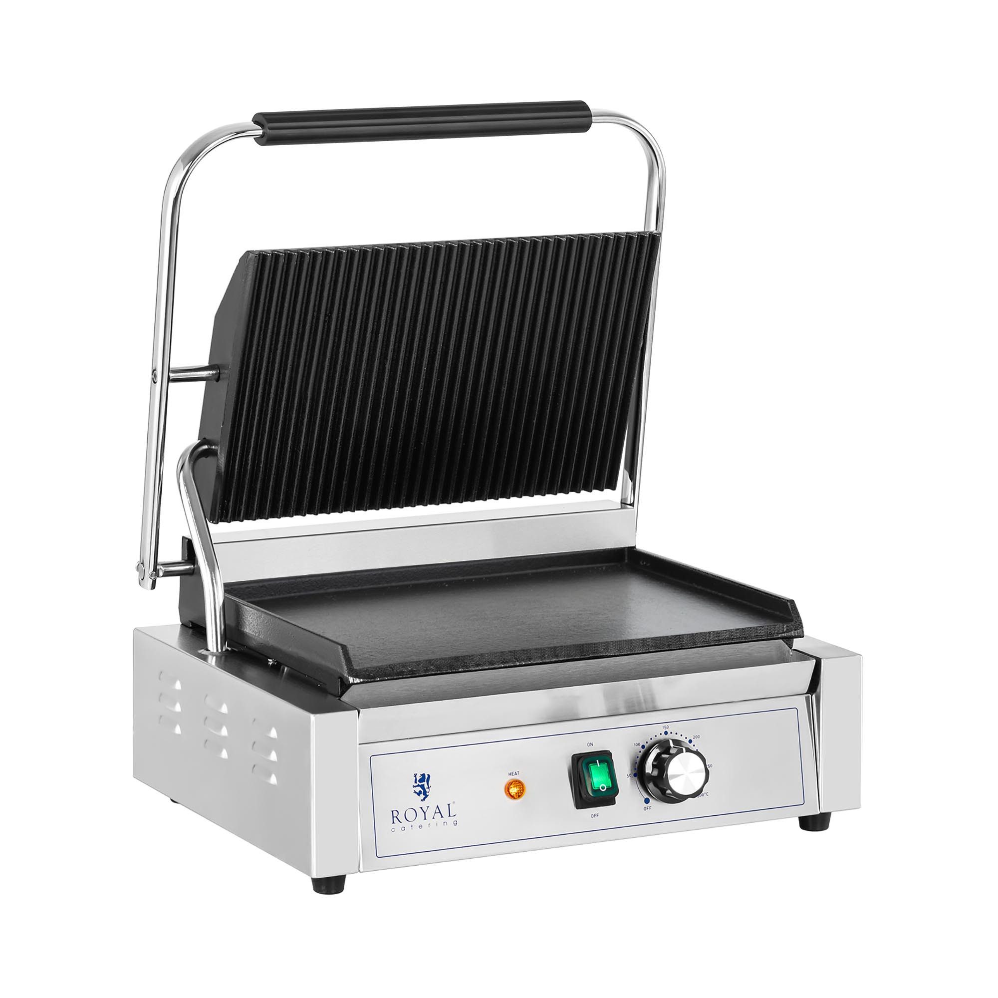 Der Kontaktgrill von Royal Catering ist ein professionelles Kochgerät, welches für Hotelrestaurants, Cafés, Fast-Food-Restaurants, Catering-Unternehmen, aber auch für den privaten Gebrauch konzipiert wurde. Die Grillplatten sind flexibel einsetzbar und eignen sich hervorragend für die Zubereitung von Fleischgerichten, Gemüse, Sandwiches sowie Panini-Brötchen.