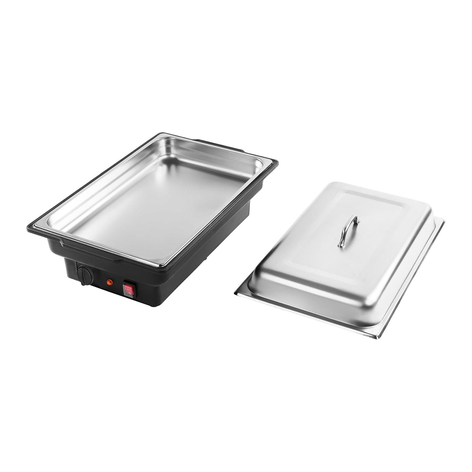 Der elektrische Chafing Dish hat eine Leistung von 900 Watt und bietet mit Temperaturen von 30 bis 90 °C für eine große Vielfalt an Gerichten die perfekte Wärme. Dank der Funktionsweise über ein Wasserbad wird dabei die Wärme zuverlässig und schonend an die Speisen weitergegeben; ohne dass die Lebensmittel verbrennen könnten. So lassen sich auch empfindliche Speisen über einen langen Zeitraum problemlos warmhalten.