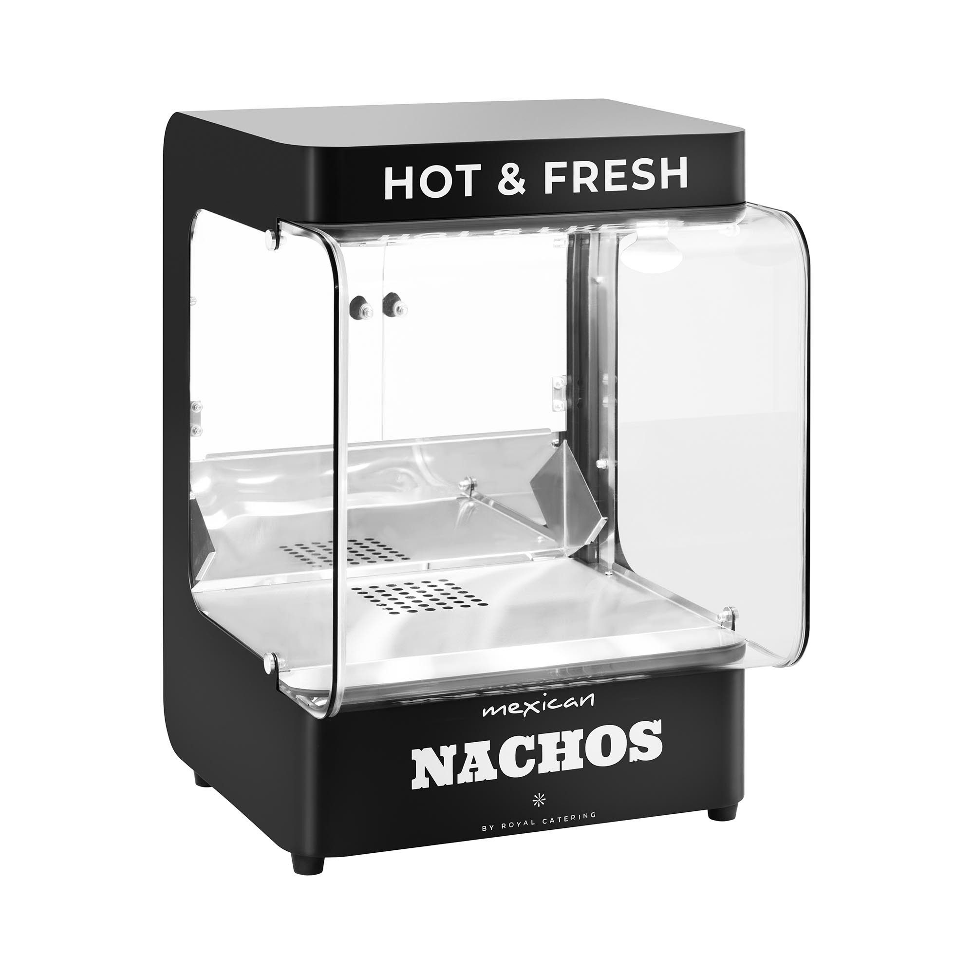 Knusprige Tortilla-Chips mit zartschmelzender Käsesoße: Wer kann da schon widerstehen? Im Nacho-Wärmer von Royal Catering lagern Sie bis zu 99 l der knackigen Chips warm und servierbereit. Die Profimaschine ist für den kommerziellen und privaten Gebrauch konzipiert. Der stylische Snackwärmer in Schwarz ist ein absolutes Must-have für alle Kinos, Großveranstaltungen oder Privatevents.