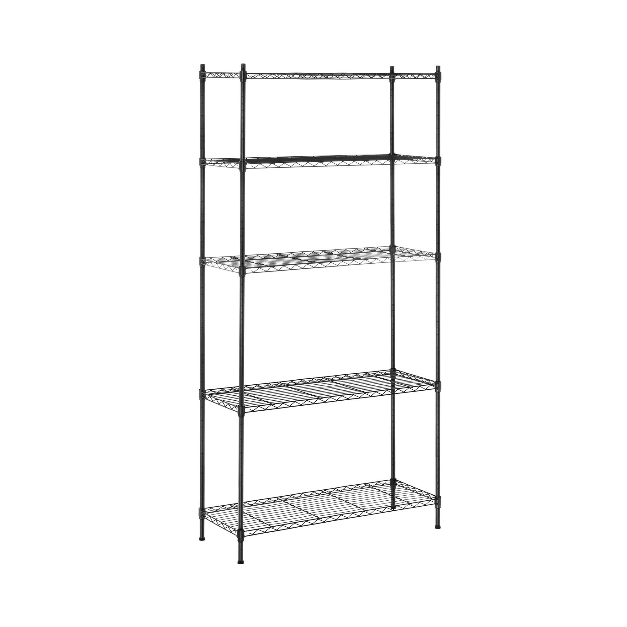 Bewahren Sie Ihre Küchenutensilien, Küchengeräte, Lebensmittelvorräte oder Gewürze ordentlich im Steckregal auf. Fünf Ablagen mit den Maßen 35 x 90 cm bieten Ihnen einen großen Stauraum. Jede der fünf Ablageflächen kann mit bis zu 30 kg belastet werden, wodurch die gesamte Konstruktion bis zu 150 kg tragen kann. Die Ablageflächen sind außerdem höhenverstellbar, somit können Sie diese Ihren Bedürfnissen optimal anpassen. Des Впередen ist es möglich, drei oder vier Ablagen zu montieren. Es können sogar zwei kleinere Regale entstehen. Dank der offenen Bauweise ist das Regal leicht zugänglich, sodass Sie jederzeit an die benötigten Objekte gelangen.