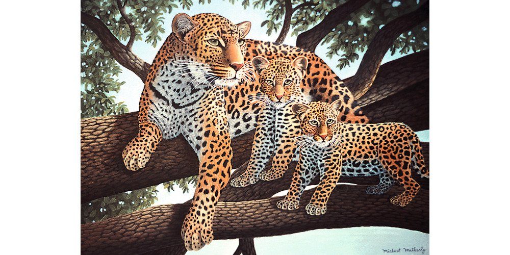 Das Motiv - Malen nach Zahlen 'Leoparden' hat eine Размер von ca. 30 x 40 cm. Enthalten sind in diesem Set ein nummerierter Malkarton, 10 Acrylfarben, 1 Pinsel und eine Anleitung. Auf einem weißen Karton mit strukturierter Oberfläche ist das Motiv mit den Leoparden aufgedruckt.