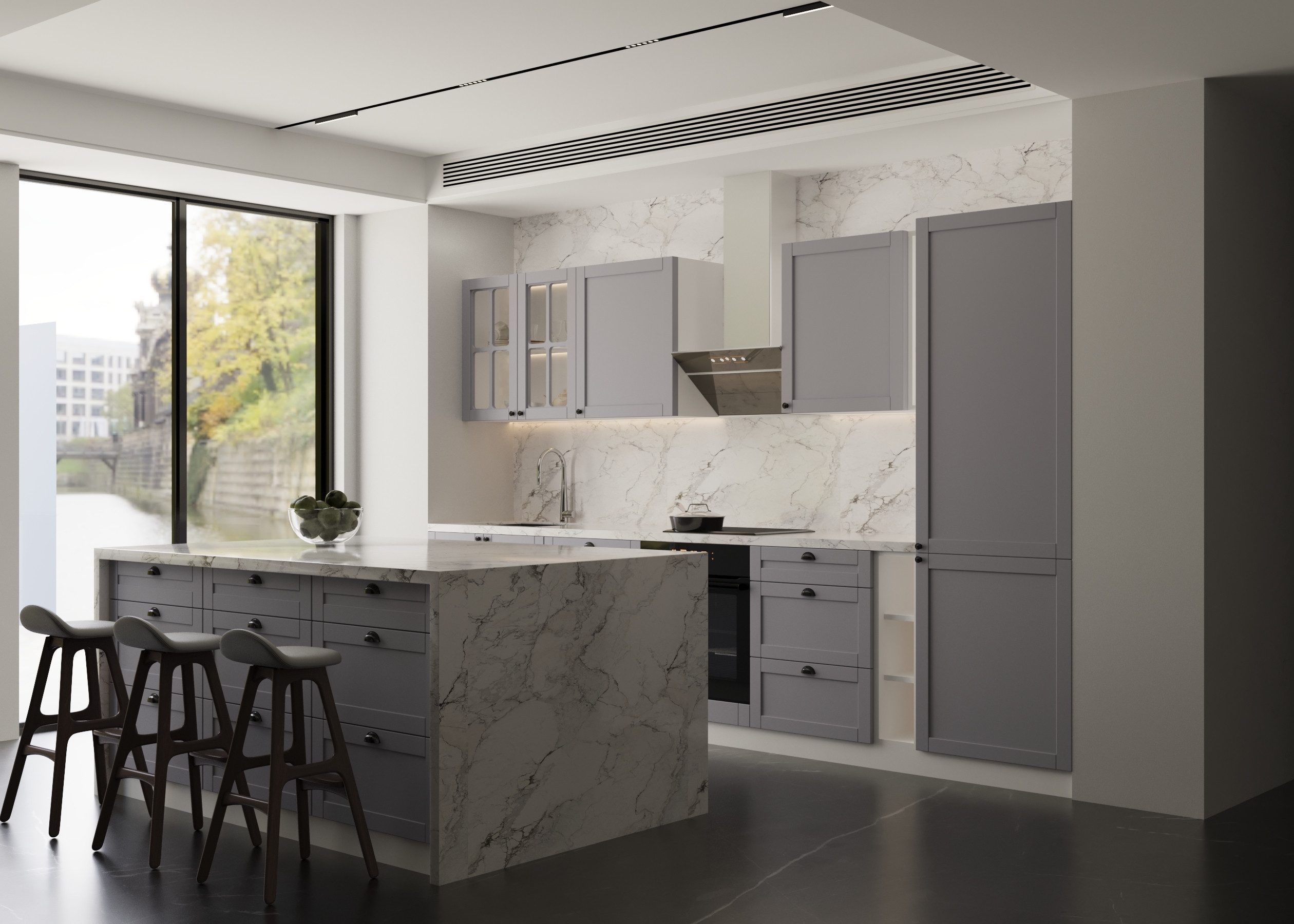 Küchenmöbel-Set Linea 340 cm – Matt Grau Oder Matt Weiß