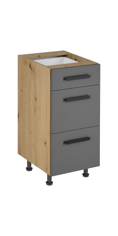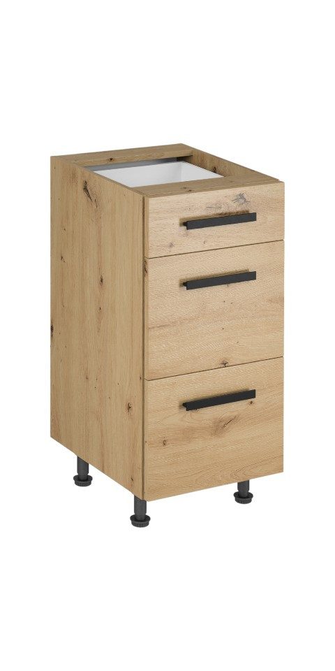 Suchen Sie ein Möbelstück, das Ihrer Küche Funktionalität und Stil verleiht? Dieser Langen D40S3 Küchenunterschrank mit drei Schubladen ist die perfekte Lösung.
