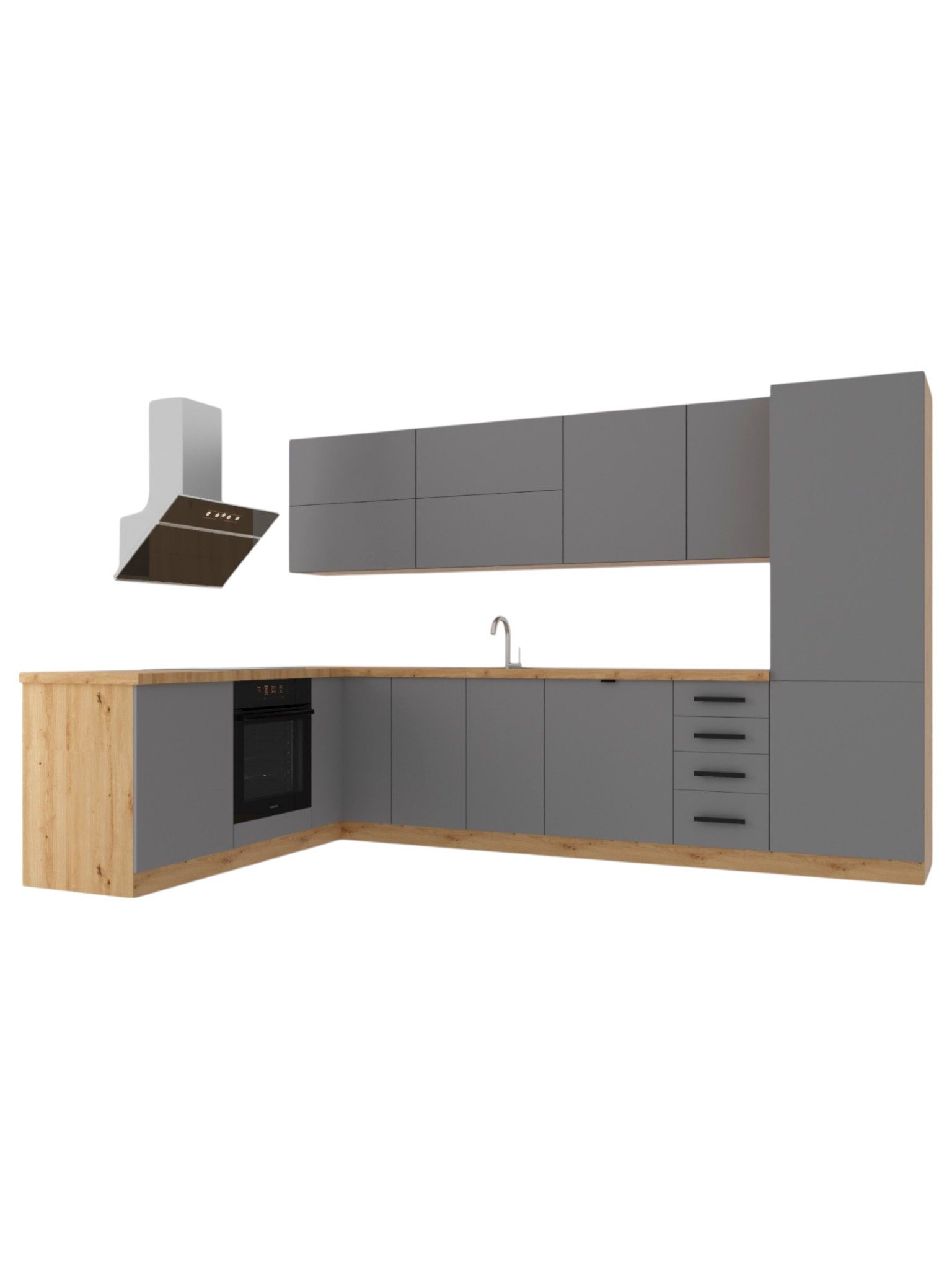 Küchenmöbel-Set Langen 330 × 210 cm – Matt Grau Oder Matt Beige Oder Artisan Eiche