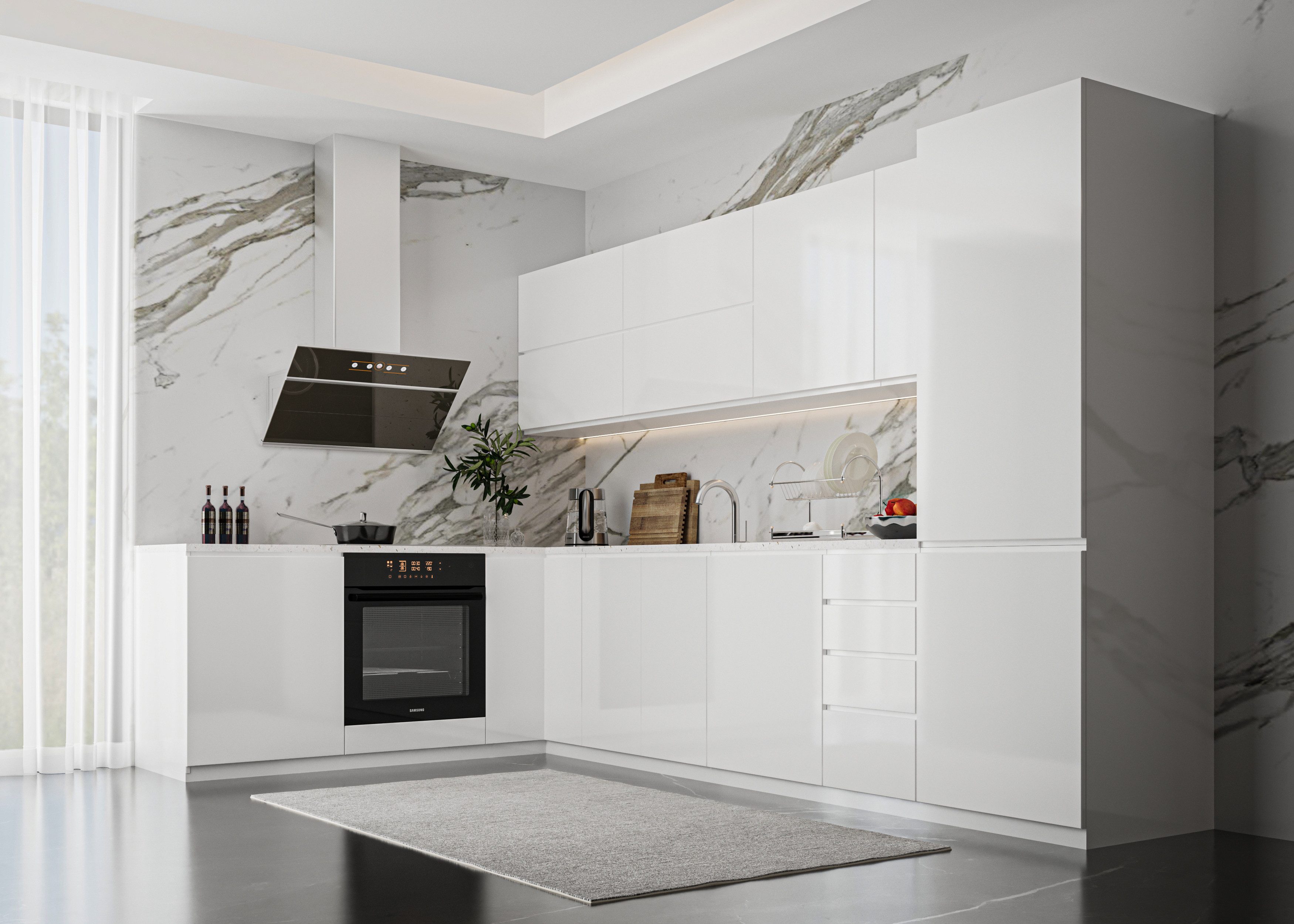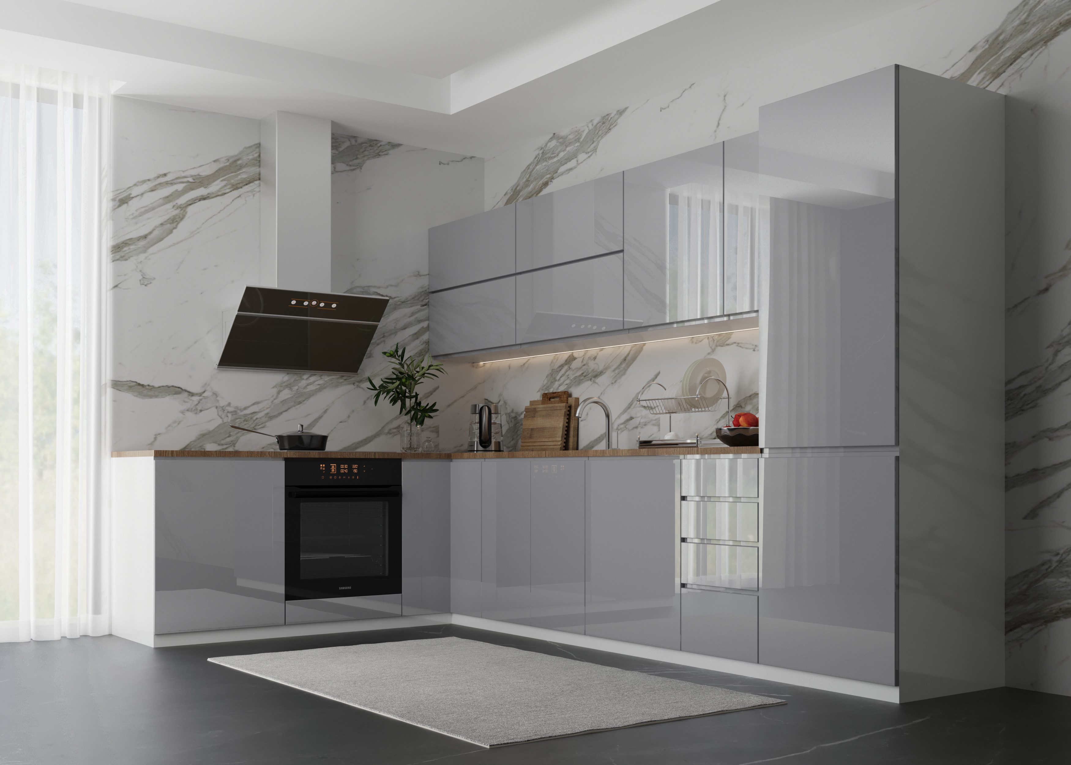 Küchenmöbel-Set Aspen 330 × 210 cm – Hochglanz Grau Oder Hochglanz Weiß