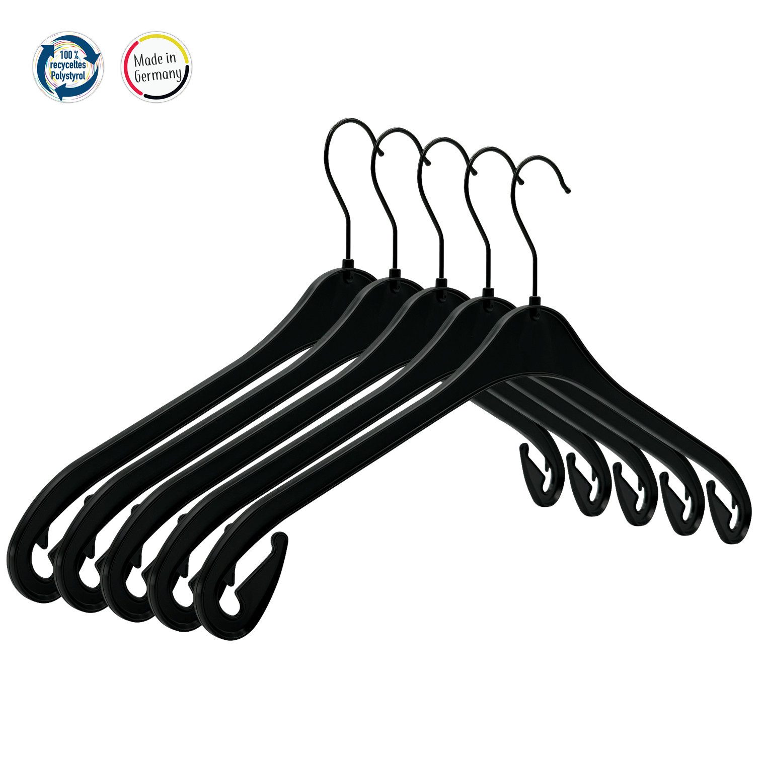 Elegante Black Edition: Schwarzer Haken und schwarzer Kleiderbügel. Modern und stilvoll, passt perfekt in jede Garderobe.
