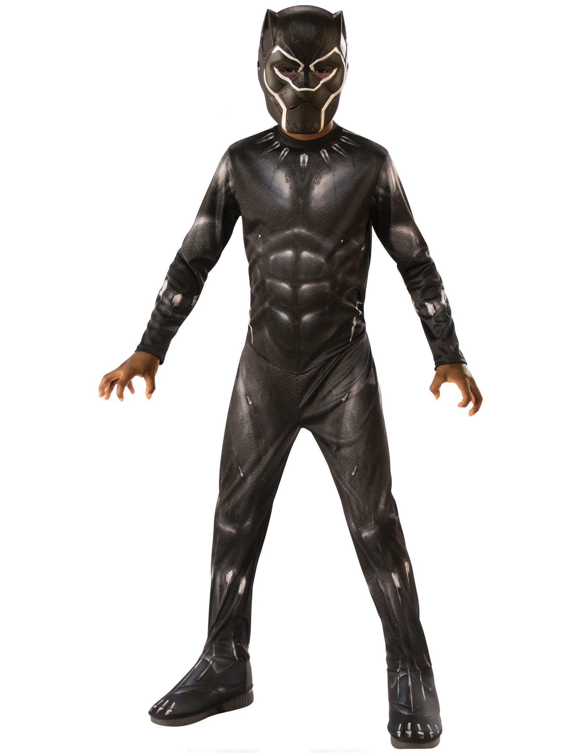Dieses Black Panther- Kostüm ist ein offizieller Lizenzartikel von Avengers Infinity War und besteht aus einer Halbmaske, einem Overall und Stiefelabdeckungen. Der Overall mit schwarzer Lederoptik ist mit Talisman sowie Arm- und Bauchmuskeln des Superhelden T'Challa bedruckt. Die Stiefelabdeckungen geben dem Outfit den letzten Schliff. Die PVC-Halbmaske besitzt ein elastisches Klettverschluss-System und wird von dunklen Pantherohren geschmückt. Auf einer Avengers-Mottoparty oder an Karneval wird Ihr Kind mit diesem Black-Panther-Superhelden-Kostüm zum angesagten Superhelden.