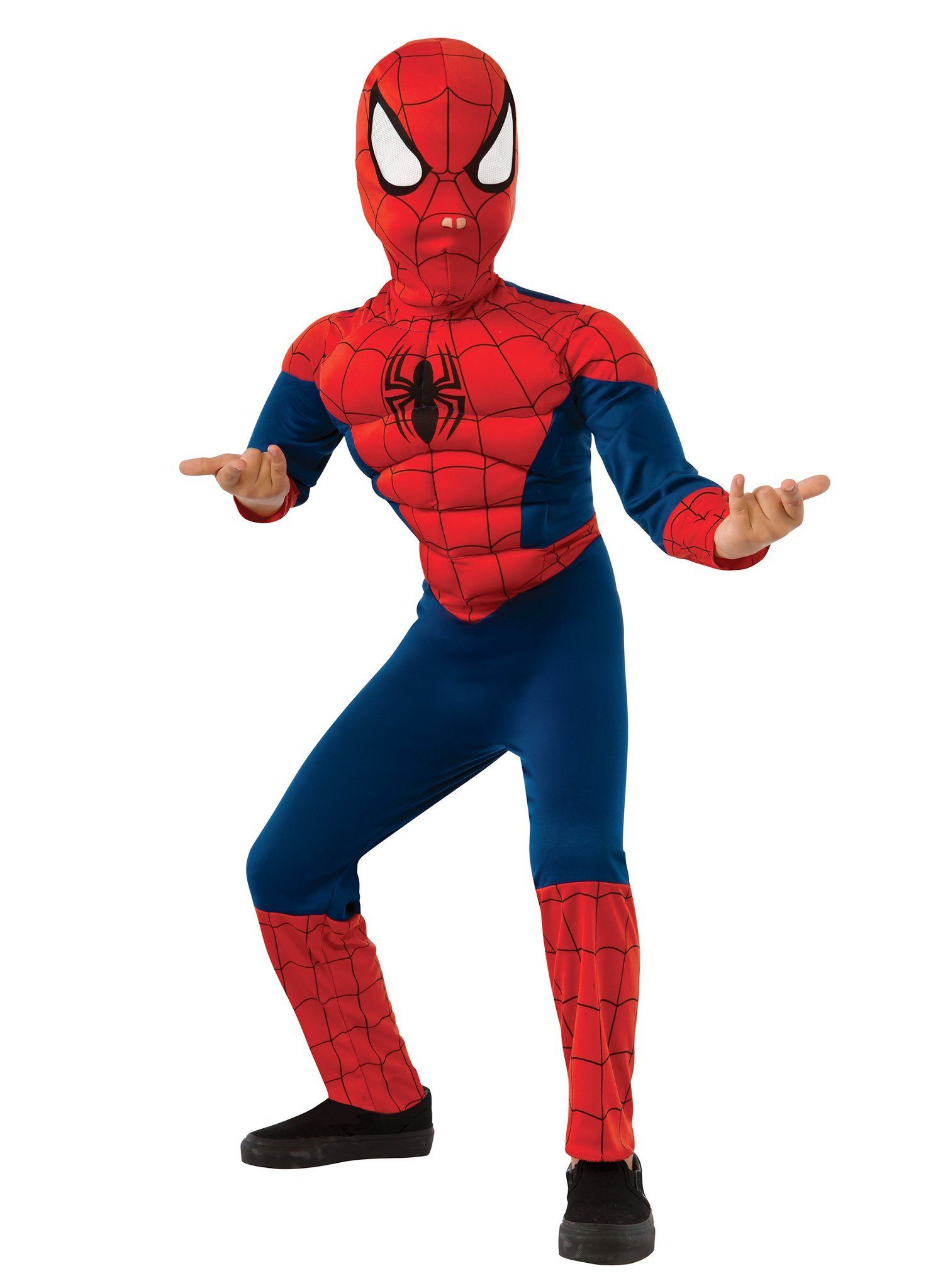 Ausstattung | - Spider-Man Comic Kinderkostüm zweiteilig- mit Ganzkörper-Jumpsuit mit angenähten Stiefelstulpen- gefütterte Muskelbrust!- mit Maske- ohne sonstige Kostümteile und Accessoires |