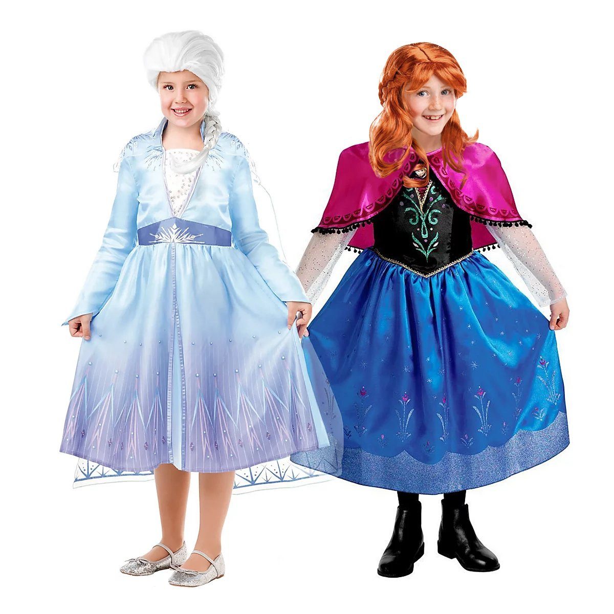 Ausstattung | - Anna und Elsa aus Die Eiskönigin Verkleidungskiste für Kinder 4-teilig- mit Elsa Perücke und Kostüm für Kinder aus Die Eiskönigin 2- mit Anna Perücke und Kostüm für Kinder aus Die Eiskönigin - alle Kostüme sind nach Размер sortiert |