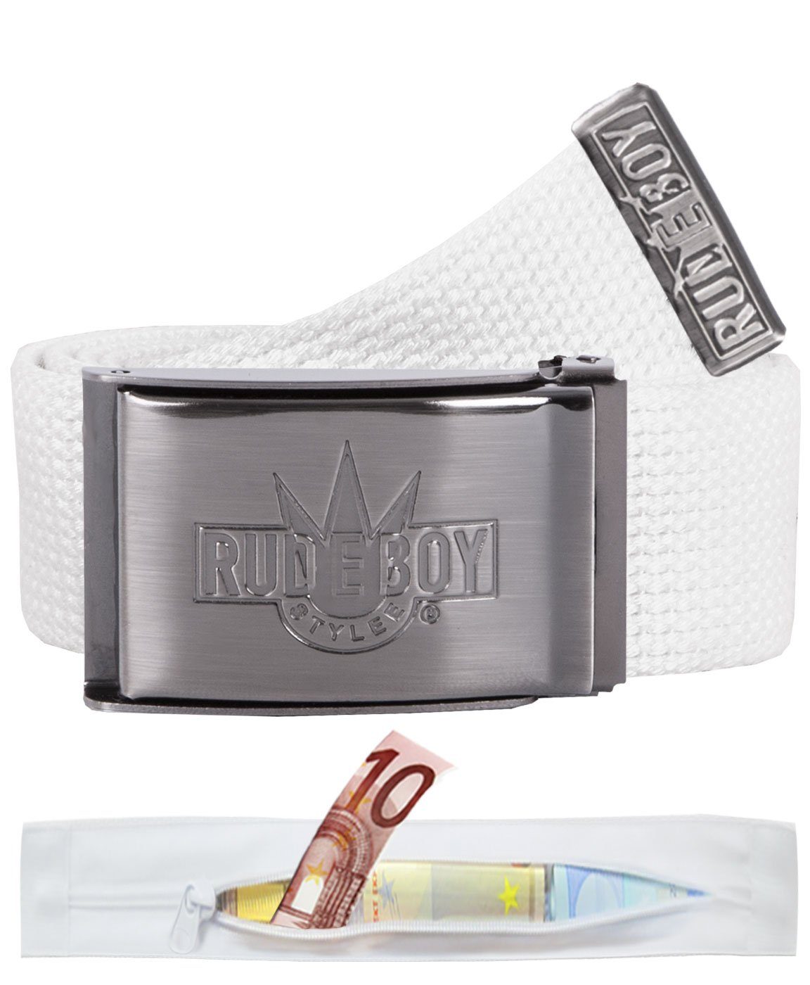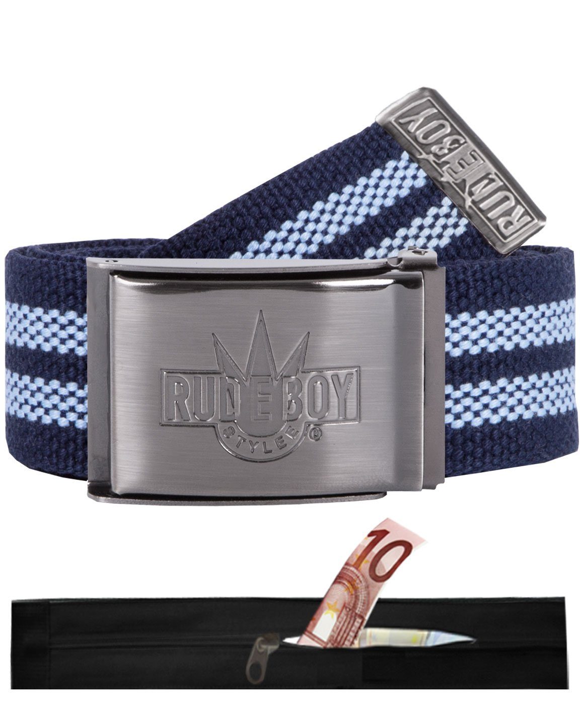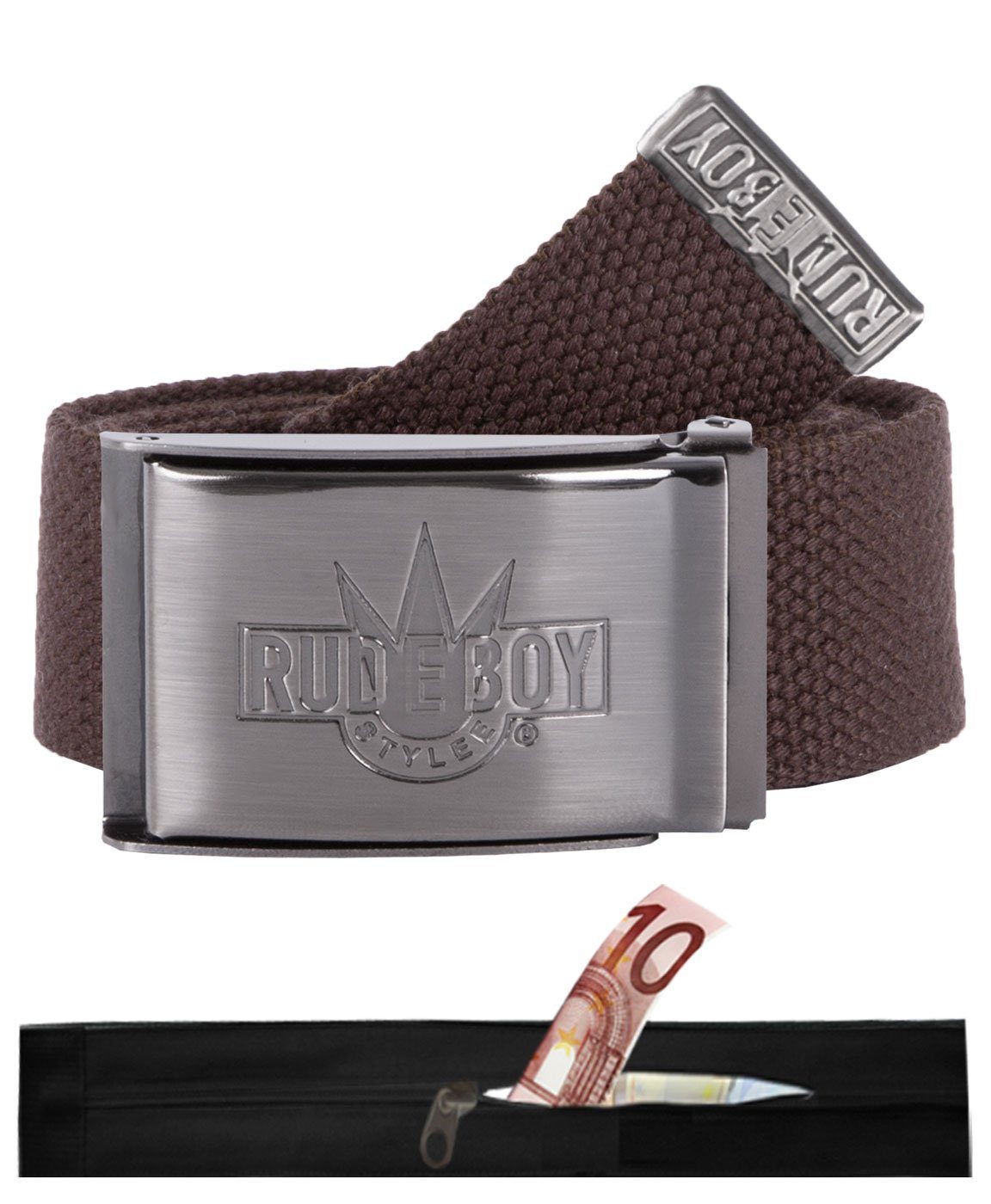 Original Rudeboy Stylee Tresorgürtel Canvas Secret Belt Einfarbig oder Mehrfarbig in 13 Farben/Farbkombinationen für Damen und Herren ca. 120 cm lang und ca. 4 cm breit mit matt gebürsteter Schnallen mit Klappverschluss und gestanztem Rudeboy Stylee Logo. Dieser Stoffgürtel mit Geheimfach und Reißverschluss auf der Gürtelinnenseite kann um ca. 15 cm verstellt werden. - Original Rudeboy Stylee Tresorgürtel Canvas Secret Belt - Reisegürtel Safe Belt mit Geldfach / Geheimfach mit Reißverschluss für Bargeld auf der Innenseite - um 15 cm verstellbarer Koppelgürtel - Geldgürtel Money Belt für Damen, Herren und Kinder - matt gebürstete Metallschnalle mit Klappverschluss - Schnalle: Rudeboy Stylee Logo in Gürtelschnalle gestanzt - Gürtelendstück aus Metall mit Rudeboy Stylee Logo - Breite: ca. 4 cm - Длина: ca. 120 cm - Größe: One Size - Material: Polyester im Cotton Look - 13 Farben und Farbkombinationen - Muster: Einfarbig oder Mehrfarbig gestreift - Hauptfarben: Schwarz, Weiß, Blau, Grau, Braun, Grün, Gelb, Rosa, Beige - Herrengeldgürtel und Damengeldgürtel für Jeanshosen - Koppelgürtel mit Geldfach für Männer, Frauen, Jungen und Mädchen