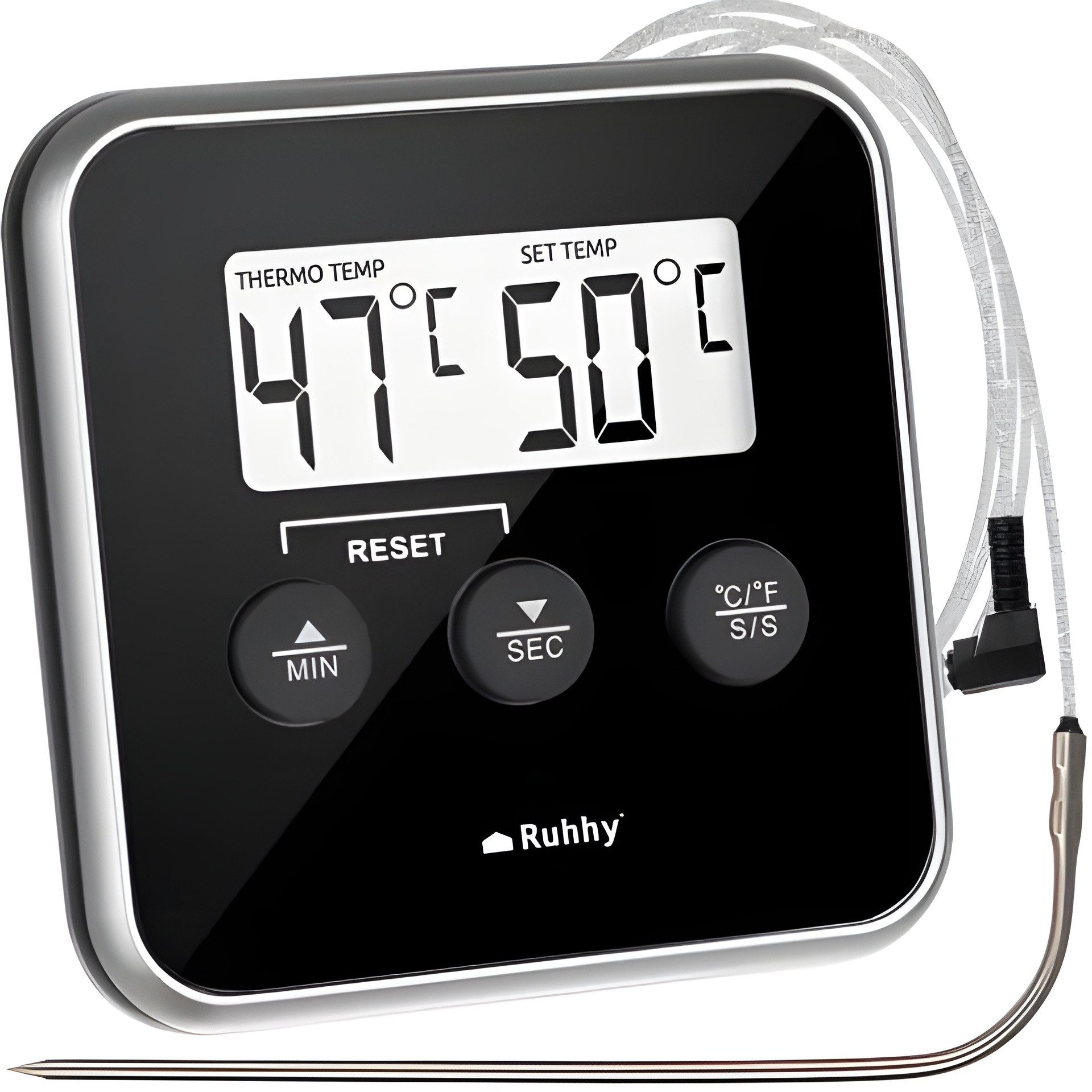 Lieferumfang | 1x Küchenthermometer 1x Sonde (edelstahl) mit hitzebeständigem Kabel |