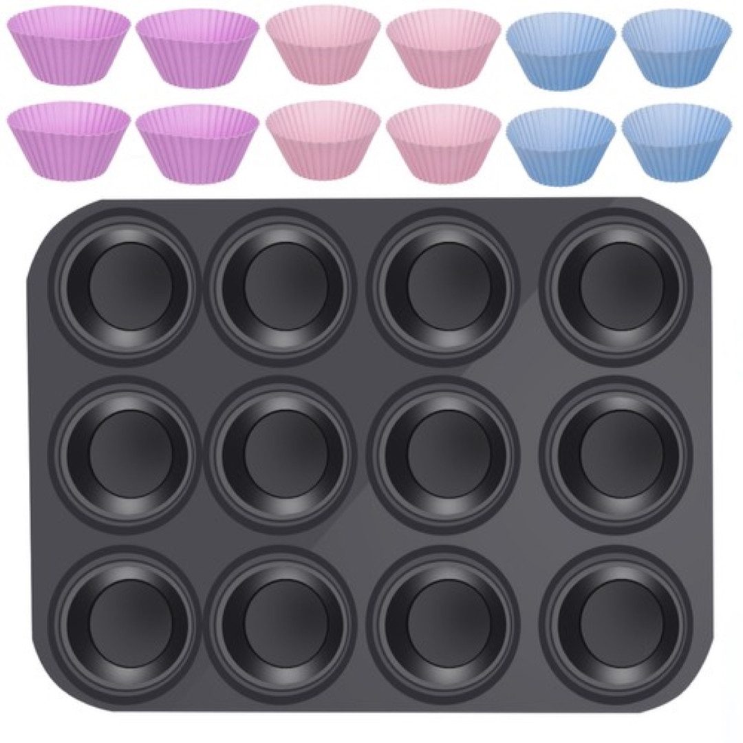 Backblech aus Teflon für Muffins + 12 Silikonformen, 35x26,5x3 cm