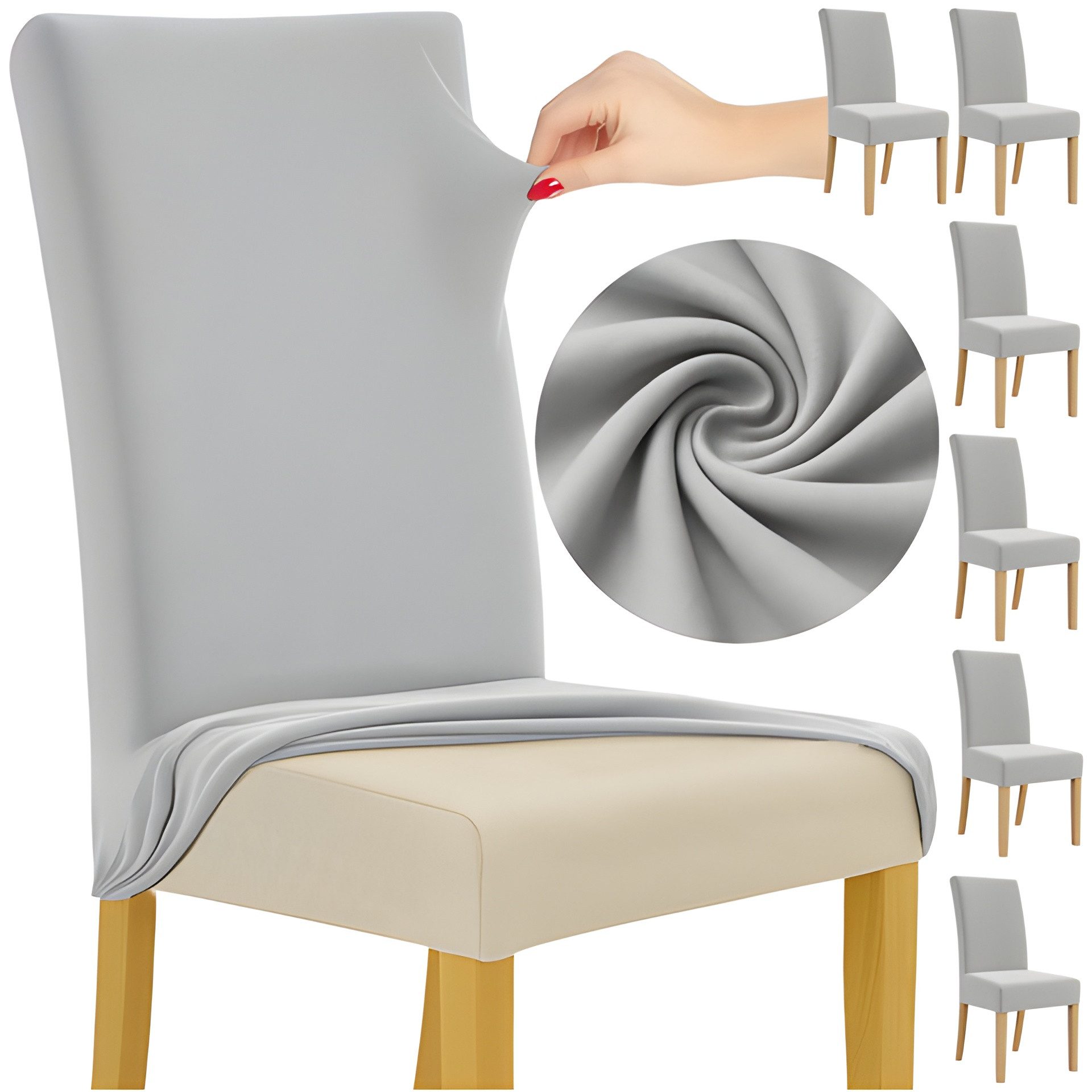 Eleganz & Schutz für Ihre Stühle – RUHHY Stuhlhussen 6er Set in Dunkelgrau Verleihen Sie Ihrem Essbereich im Handumdrehen ein stilvolles Update – mit dem RUHHY Stuhlhussen-Set (6-teilig). Die Hussen bestehen aus weichem, elastischem Samtstoff in edlem Dunkelgrau und passen sich dank integrierter Gummibänder perfekt der Form gängiger Standard-Stühle an (Maße: 65 x 40 x 35 cm). Sie bieten optimalen Schutz vor Flecken, Kratzern und Abnutzung, kaschieren Unebenheiten und lassen Ihre Stühle wie neu aussehen. Die strapazierfähige Stoffqualität ist blickdicht, langlebig und maschinenwaschbar. Ideal für Küche, Esszimmer oder Events – praktisch, formschön und pflegeleicht!