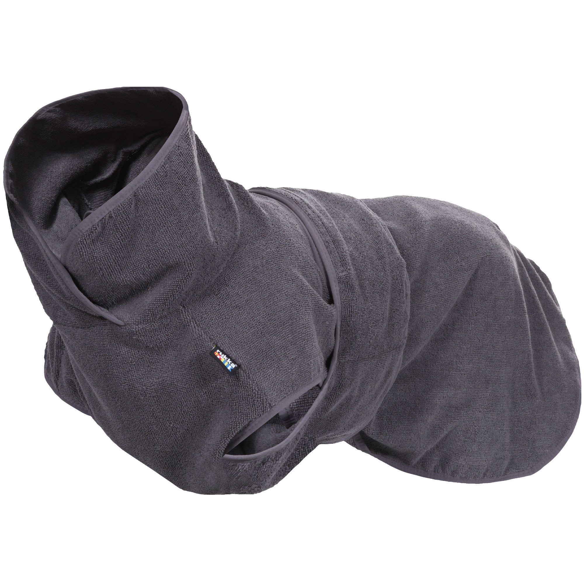 Der Maschinen-waschbare Rukka® Pets Hunde-Bademantel bietet viele Vorteile: Er ist schnell angelegt, spart Zeit, lässt sich angenehm tragen, verrutscht nicht und trocknet schnell wieder. Der weite Taillenbund mit Klettverschluss sorgt für ein angenehmes Tragegefühl und eine weite Passform. Und die Eigenschaften des Bademantels verbessern sich mit dem Tragen sogar noch. Die finnische Firma Rukka® Pets fertigt ausschließlich langlebige, praktische, professionelle, hochwertige Markenartikel für Hunde. Tipp: An heißenTagen eignet sich der angefeuchtete Bademantel auch als wunderbar kühlender Umhang für Ihren Hund!