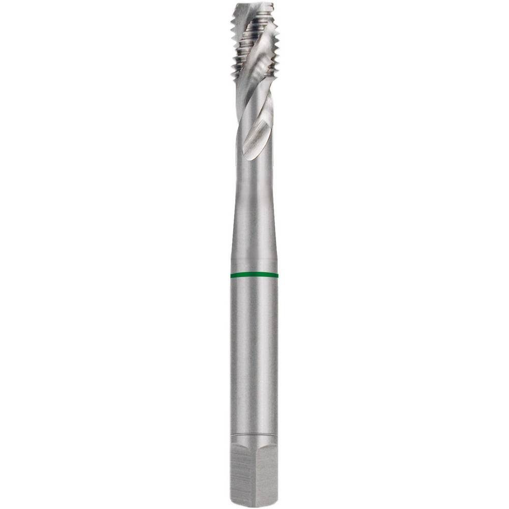 Maschinengewindebohrer aus kobaltlegiertem Hochleistungs-Schnellarbeitsstahl. Durch die höhere Warmhärtebeständigkeit wird eine höhere Standzeit erreicht. Für Durchgangsgewinde und Sacklochgewinde, in unlegierte und legierte Stähle bis 1000 N/mm² Festigkeit und NE-Metalle. Das Gewinde wird in einem Arbeitsgang geschnitten. Wie HSS-Schnellarbeitsstahl, mit Kobaltlegierung 5%. Dieser warmfeste Werkstoff wird für die Bearbeitung von Materialien mit höherer Festigkeit und bei langen Schnittkanälen mit entsprechend starker Erwärmung eingesetzt. Der Kobaltanteil von 5% sorgt für eine höhere Warmfestigkeit, sowie für höhere Belastbarkeit..