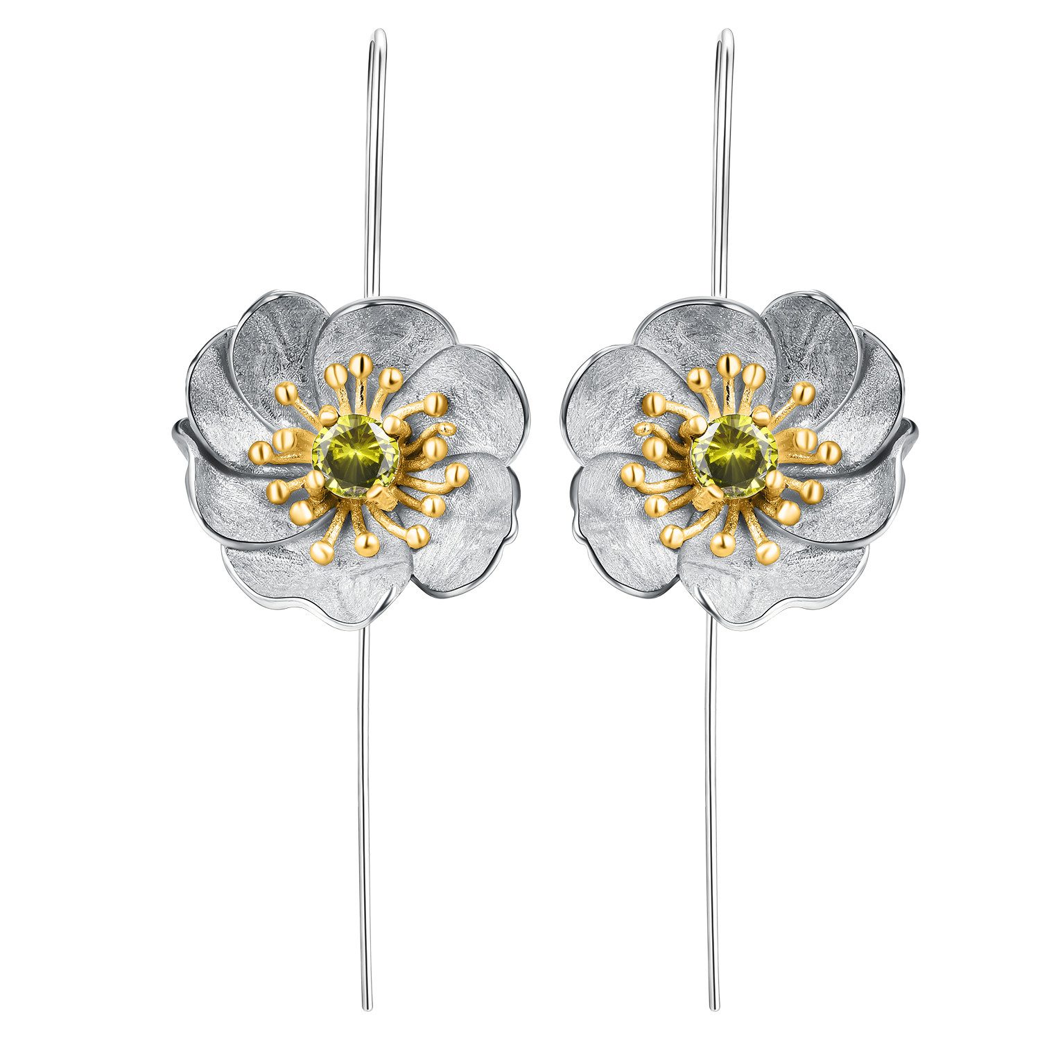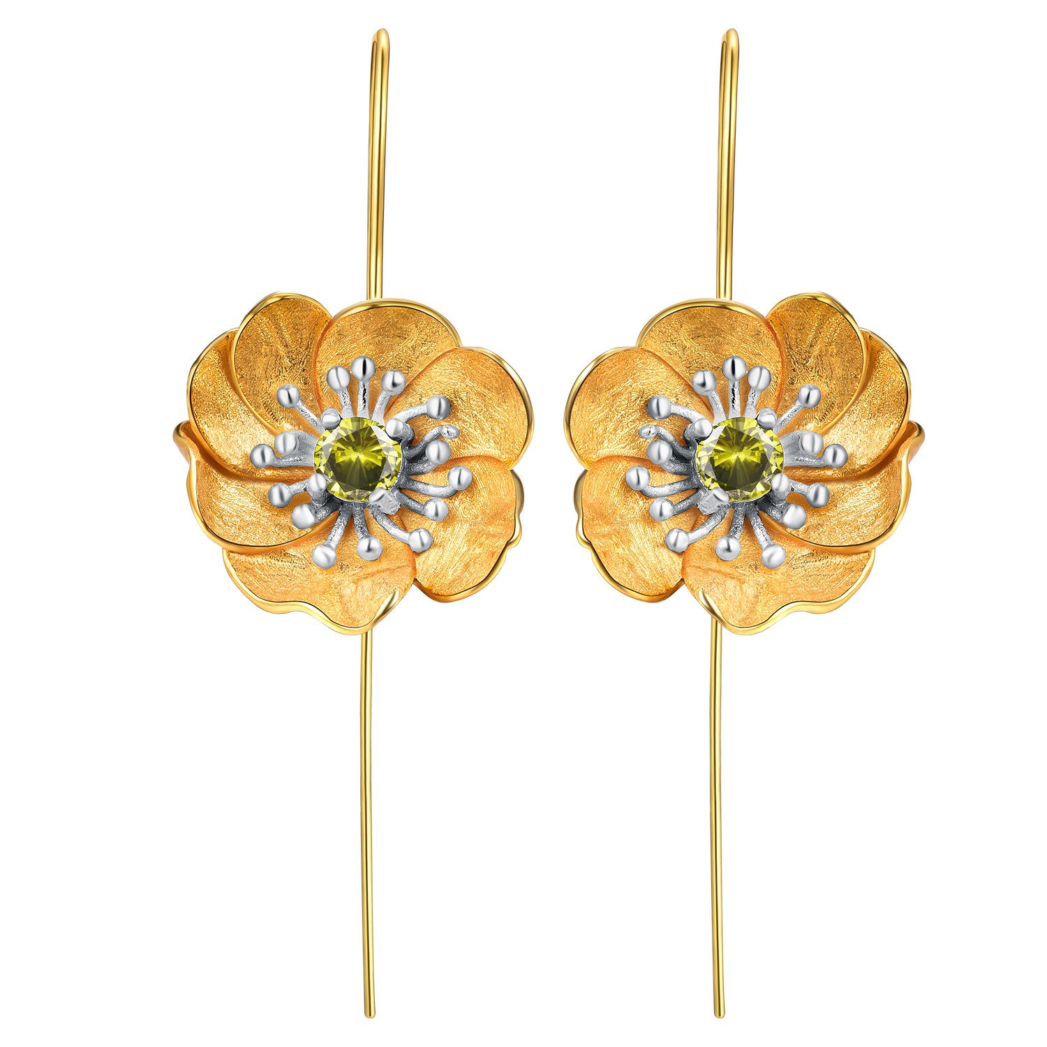 Handgefertigte Anemone Hängeohrringe aus 925 Sterling Silber, in zwei Вариантыn: teil- oder komplett mit 18K Gold plattiert
