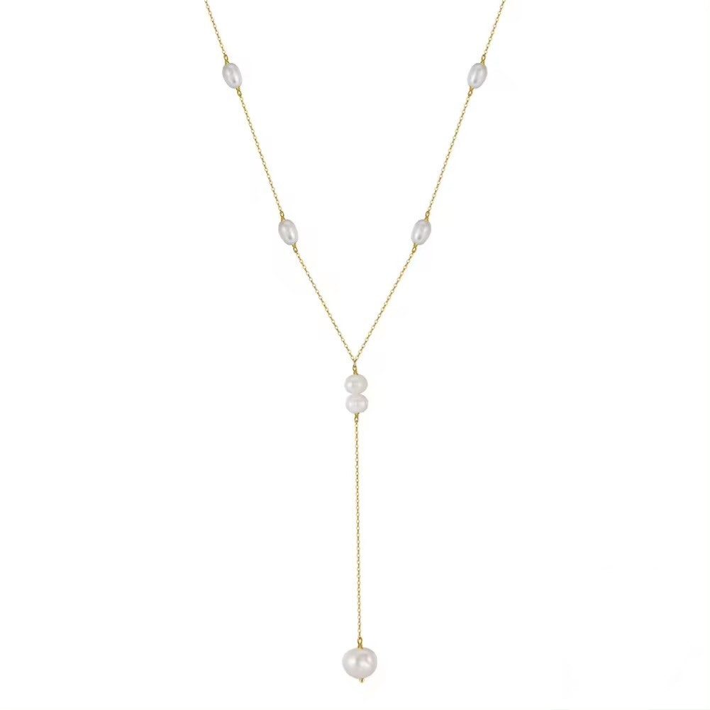 Die Kette ist mit gleichmäßig verteilten Süßwasserperlen (5-6 mm) versehen, die ihr eine raffinierte Eleganz verleihen. Am Ende der Kette befinden sich zwei größere Perlen (6-7 mm), gefolgt von einer einzelnen, hängenden Kette, die mit einer eindrucksvollen Perle (10-11 mm) abgeschlossen wird. Pflegehinweis: Diese Schmuckstücke sind aus feinstem 925 Sterling Silber gefertigt und tragen das entsprechende Echtheitsmerkmal. Sie sind zudem hypoallergen, wodurch sie sich besonders gut für empfindliche Haut eignen. Um die Schönheit und Langlebigkeit Ihres Schmucks zu bewahren, empfehlen wir, den Kontakt mit Parfüms, Deodorants und anderen chemischen Substanzen zu vermeiden. So können Sie sicherstellen, dass Ihr Schmuckstück auch nach längerem Tragen strahlt.