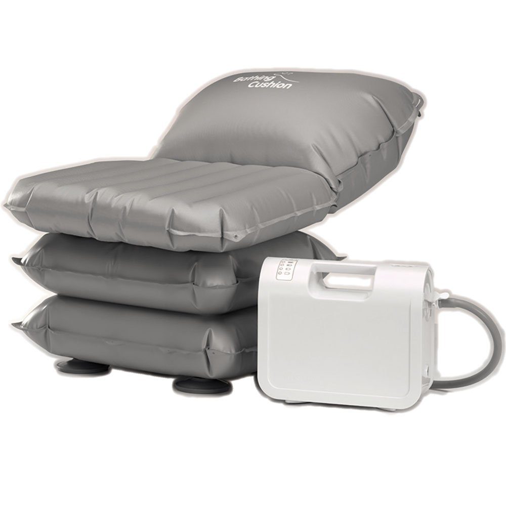 Mit dem Kompressor wird das Kissen aufgeblasen, dann setzt man sich, lässt die Luft wieder entweichen, um bis auf den Wannenboden abzusinken und kann dann das volle Schaumbad genießen. Nach dem Bad wird das Kissen per Knopfdruck dann einfach wieder aufgeblasen, um leichter aussteigen zu können. Das Kissen kann danach einfach aus der Wanne genommen werden.