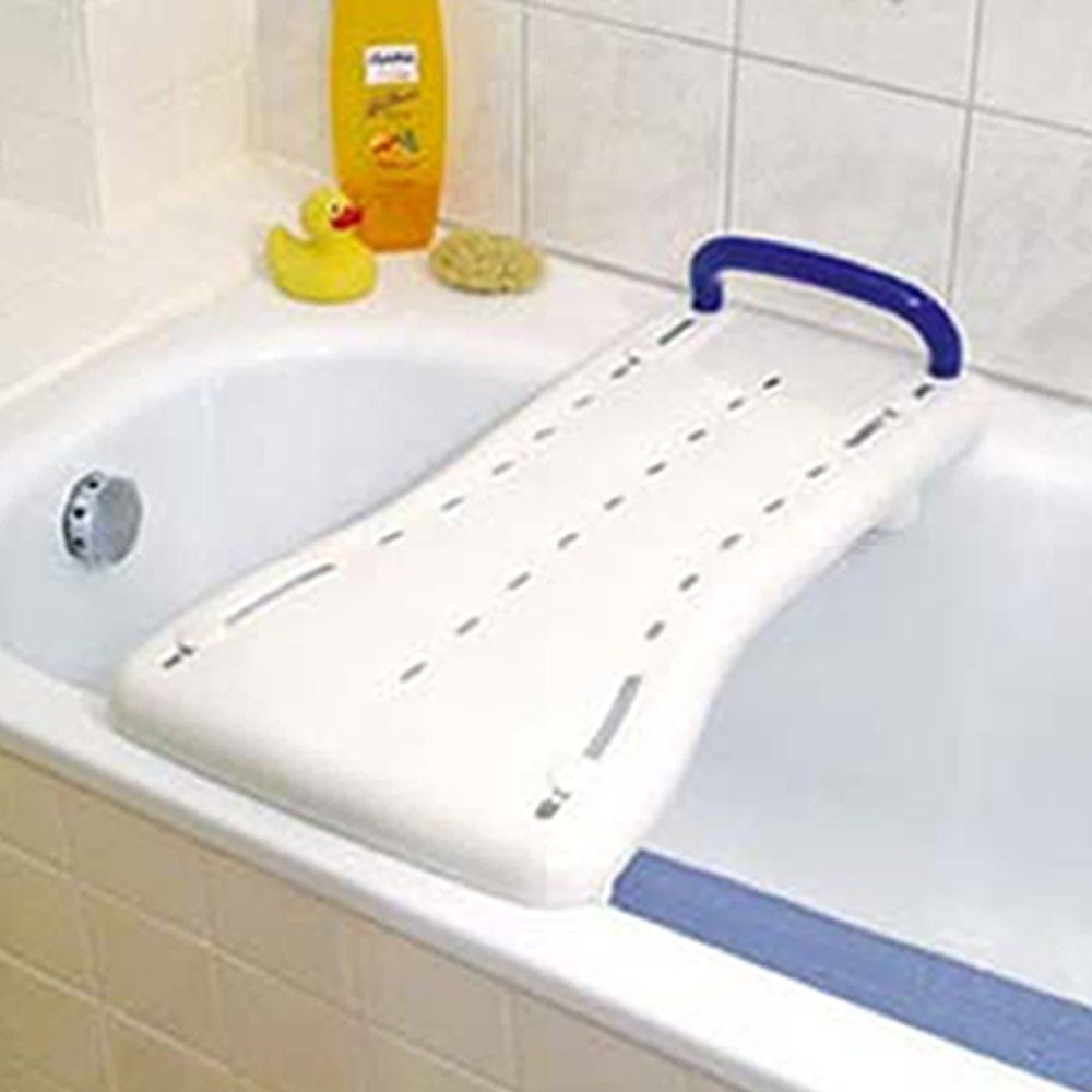 Dieses Badebrett aus hygienischem Kunststoff erleichtert als »Zwischensitz« das Einsteigen in die Badewanne. Während des Badens dient es zusätzlich als praktische Ablage. So unterstützt es Menschen mit einem Körpergewicht von bis zu 110kg, die unter eingeschränkter Beweglichkeit oder unter Rückenproblemen leiden.