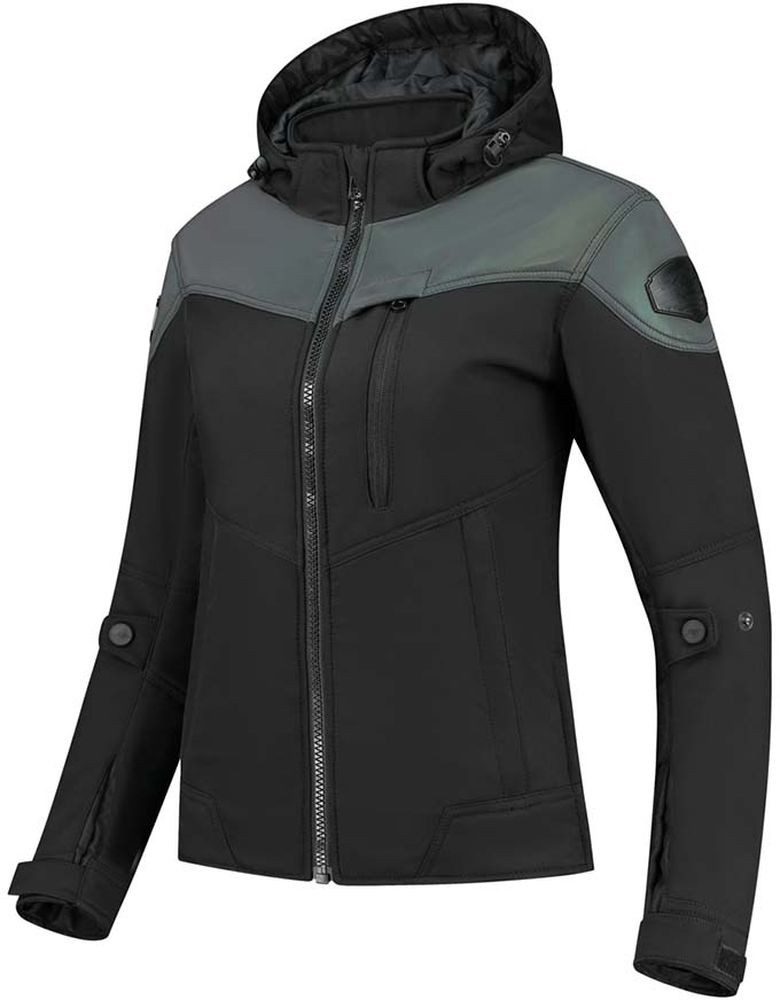 Die Super Ann Damenjacke verfügt über ein herausnehmbares Thermofutter, Rückenprotektor-Taschen, eine abnehmbare Kapuze mit einem Knopf zur Befestigung auf der Rückseite der Jacke, sowie verstellbare Ärmel, Hüfte und Handgelenke. Mit insgesamt 7 Taschen, davon 3 außen und 4 innen, bietet sie ausreichend Stauraum. Die Jacke entspricht den Schutzanforderungen für Motorradfahrer und enthält Protektoren für Ellenbogen und Schultern. Mit einer normalen Passform ist sie sowohl funktional als auch stylisch.