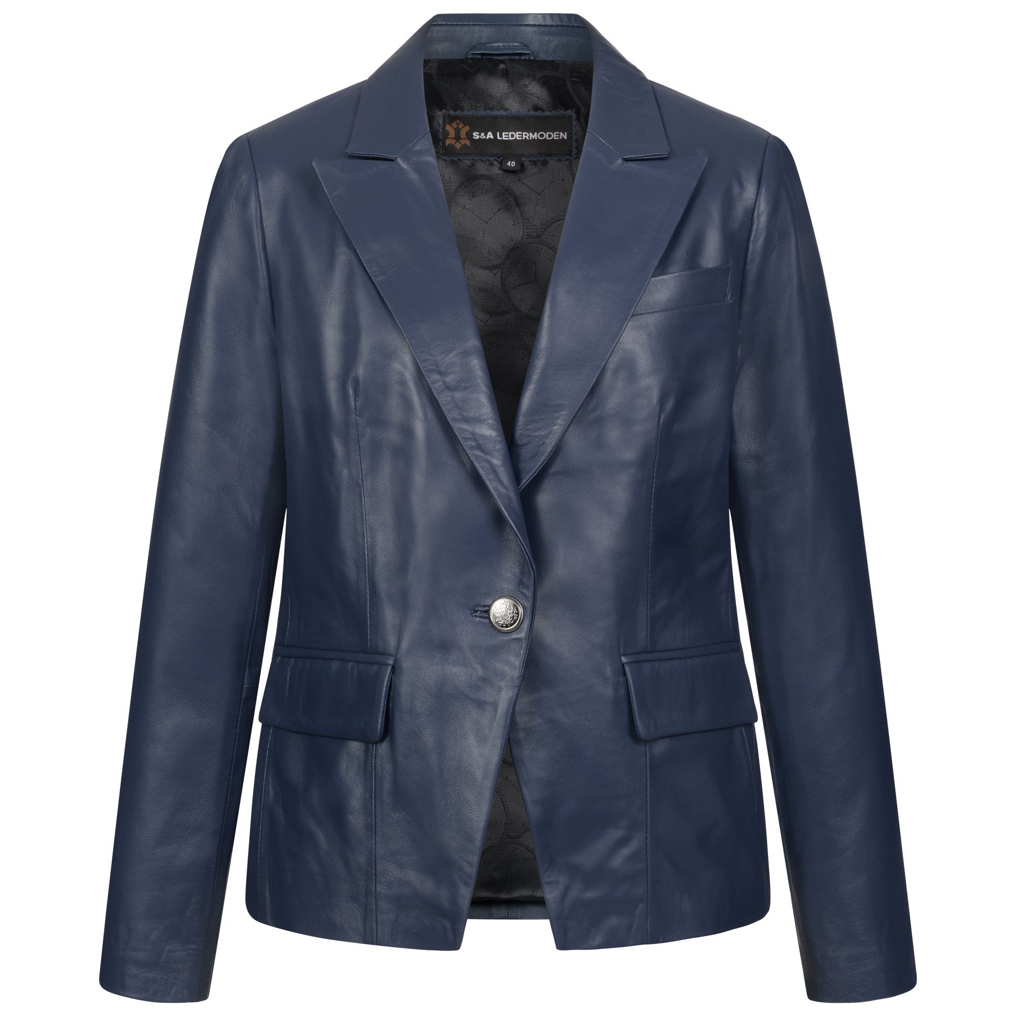 Lederblazer „PAULA“ aus echtem Lammnappa – stilvoll, hochwertig, zeitlos Der Damenblazer „PAULA“ verbindet klassische Eleganz mit moderner Passform und feinster Materialqualität. Gefertigt aus 100 % echtem Lammnappa-Leder überzeugt das Modell durch seinen weichen Griff und den edlen Look. Die natürliche Struktur des Leders verleiht dem Blazer einen hochwertigen Charakter und macht jedes Stück zu einem Unikat. Das Innenfutter aus 70 % Viskose und 30 % Polyester ist geschmeidig verarbeitet und sorgt für ein angenehmes Tragegefühl – auch bei längerem Tragen. Durch den taillierten Schnitt betont „PAULA“ die weibliche Silhouette auf stilvolle Weise, ohne einzuengen. Der klassische Reverskragen und der elegante Ein-Knopf-Verschluss unterstreichen das zeitlose Design. Zwei seitliche Pattentaschen und eine dezente Brustleistentasche bieten nicht nur praktischen Stauraum, sondern fügen sich harmonisch ins Gesamtbild ein. Ob im Büro, beim Business-Dinner oder als stilvolles Statement im Alltag – dieser Lederblazer ist ein echtes Lieblingsstück mit vielseitigen Einsatzmöglichkeiten.