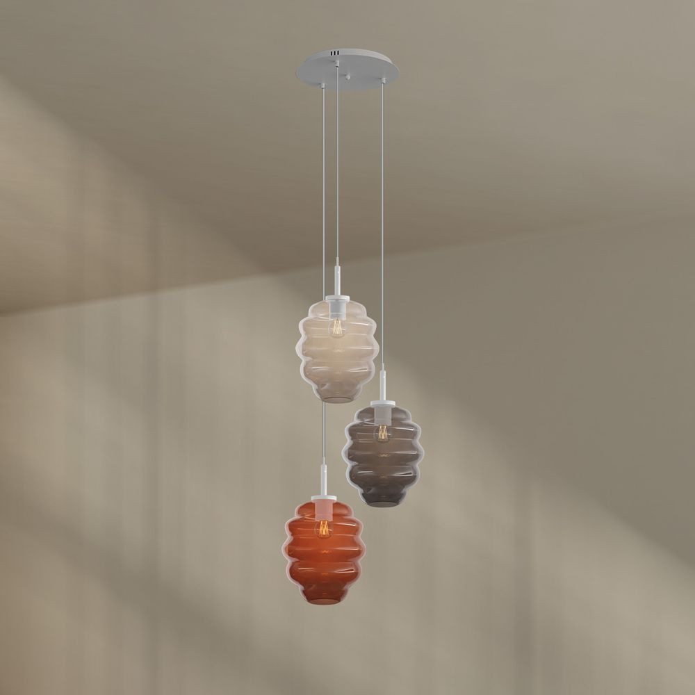 Die s.luce Echos Galerieleuchte 3-flammig mit rundem Ø 40 cm Baldachin und großformatigen Ø 25 cm Glaskörpern ist die ideale Leuchte für hohe Räume, Treppenhäuser oder offene Galeriebereiche. Ihr schwebender Charakter und das mundgeblasene Glas verleihen ihr eine edle, moderne Anmutung mit stilvoller Lichtwirkung. Drei strukturierte Glaskörper hängen frei und dezent an feinen Seilabhängungen, wodurch die Leuchte leicht und elegant wirkt. Die Kombination aus hochwertigem Glas, klarer Geometrie und flexibel kürzbarer Abhängung ermöglicht vielfältige Einsatzmöglichkeiten – sowohl im privaten als auch im repräsentativen Umfeld.