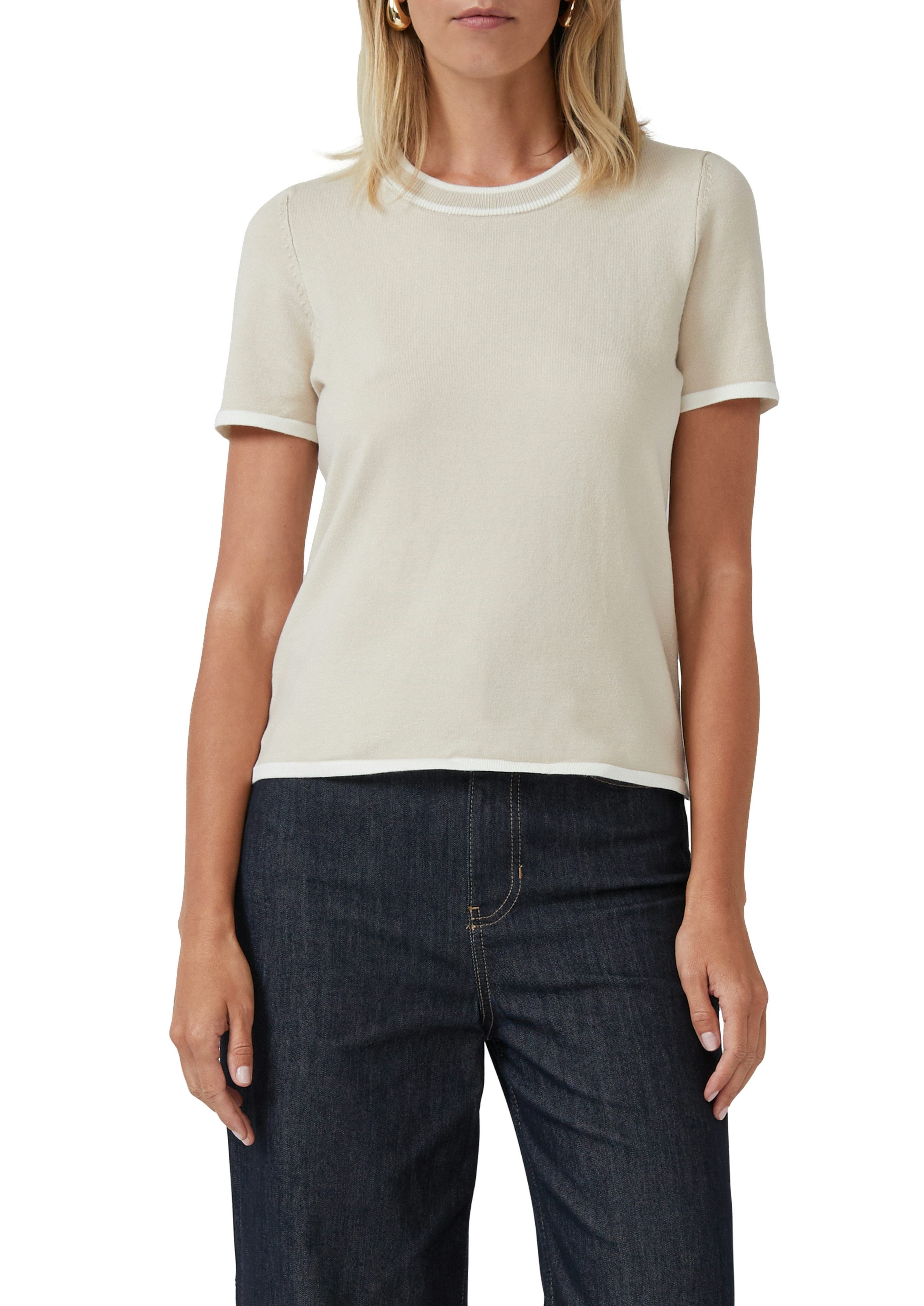 Besondere Merkmale | Feinstrick, Rundhals mit kontrastfarbenen Bündchen |