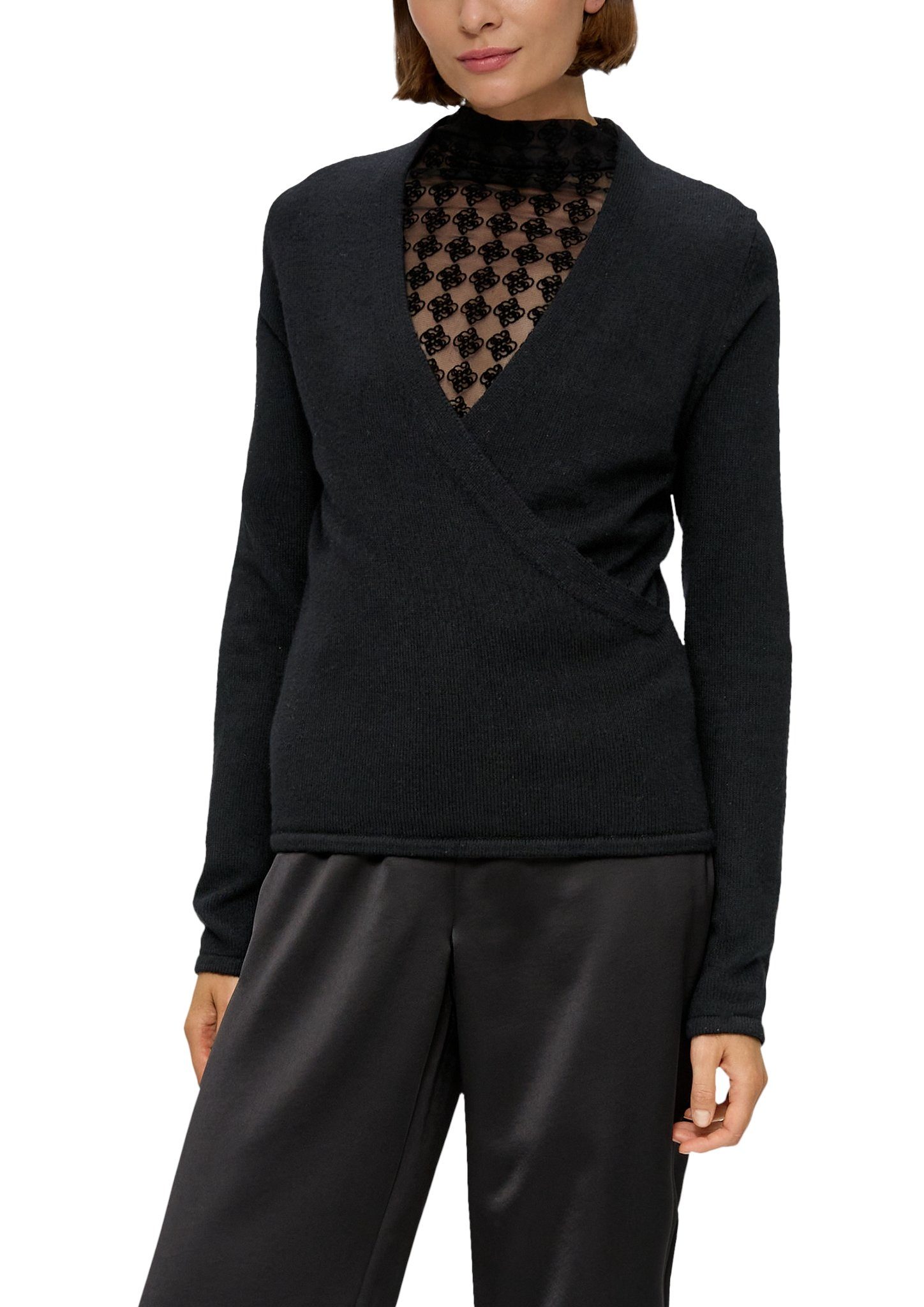 Mit dem Strickpullover von s.Oliver BLACK LABEL stellst du im Handumdrehen ein neues Outfit zusammen. Mit den Pailletten sieht er glitzernd und modern aus. Die langen Ärmel enden in einem Strickbündchen, das die Wärme schön drinnen hält. Dieser Pullover hat einen tiefen V-Ausschnitt in Wickeloptik und ist hüftlang sowie.