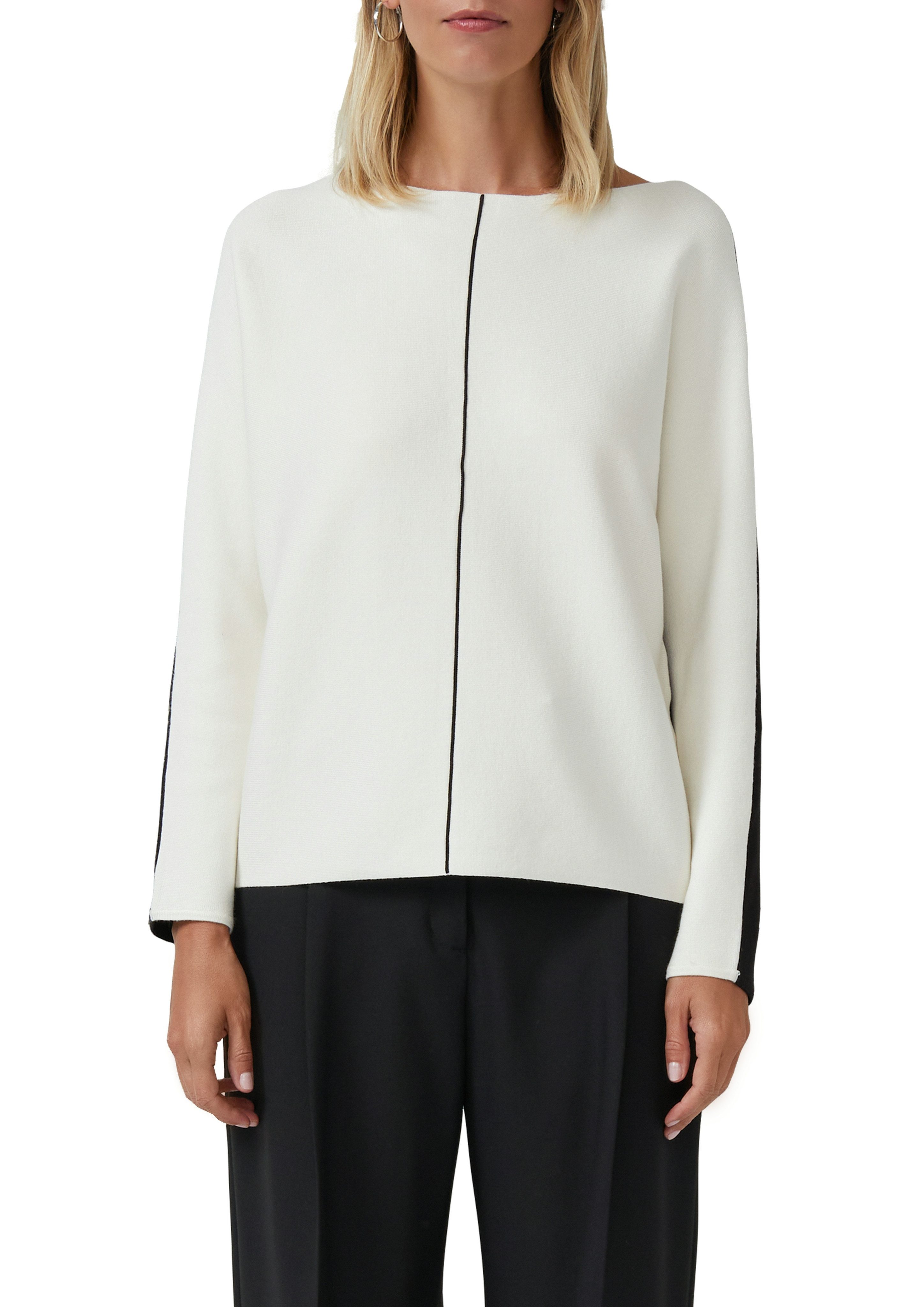 Lass dich von diesem Strickpullover von s.Oliver BLACK LABEL zu neuen Styles inspirieren, die im Gedächnis bleiben: Durch die Colourblocking-Optik bekommt dein Outfit einen markanten Look mit erfrischender und dynamischer Wirkung. Beim Colourblocking wird mit Farbkombinationen gespielt. Dabei werden entweder kontrastreiche oder ähnliche Farbflächen kombiniert. Die langen Fledermausärmel sind durch die tief ausgeschnittenen Ärmel sehr weit und geben dir dadurch viel Bewegungsspielraum. Dieser Pullover hat einen U-Boot-Ausschnitt und ist normal sowie basic geschnitten, sodass dein Oberkörper dezent in Szene gesetzt wird.