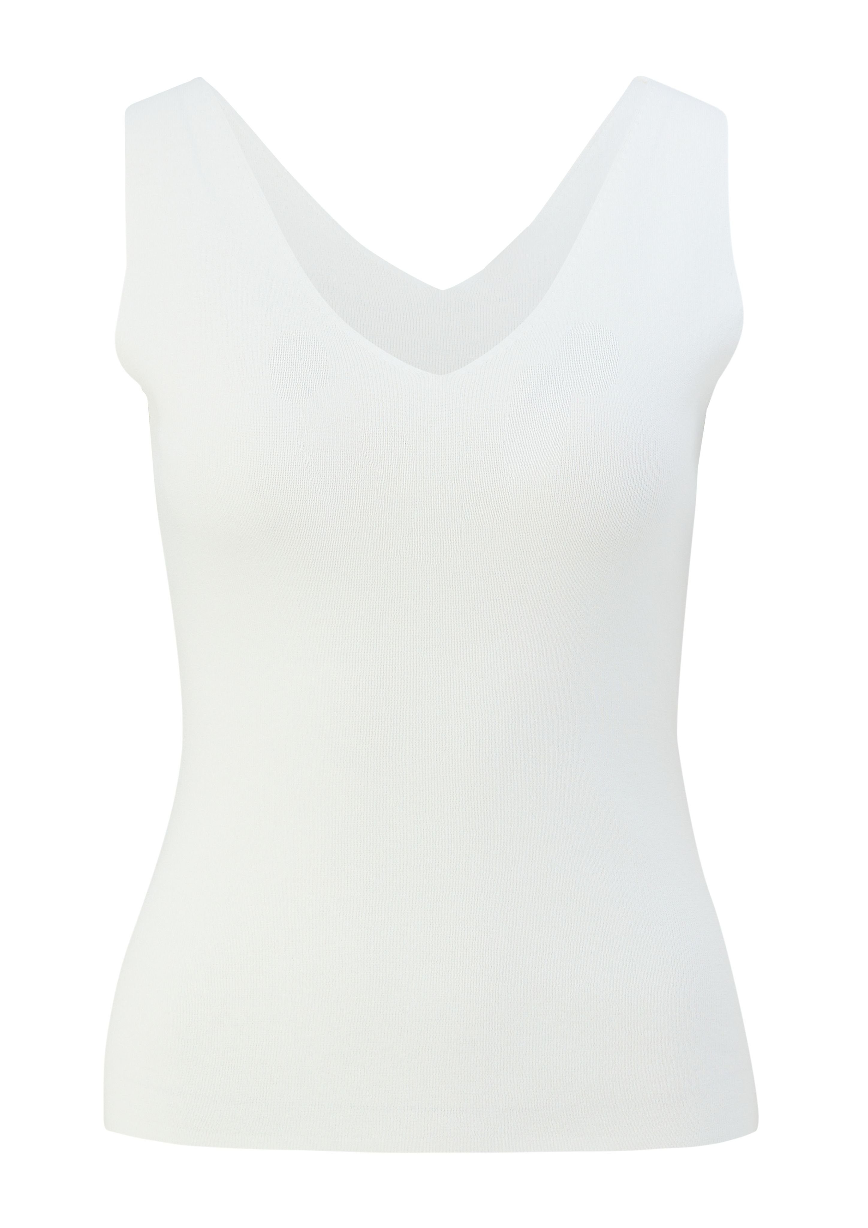 Top von s.Oliver Black Label in bequemer Passform. Angenehmer Baumwollfasermix, mit einem V-Neck, ohne Ärmel und einem schicken Feinstrick Finish. Unser Model ist 1,75m groß und trägt Размер 38.