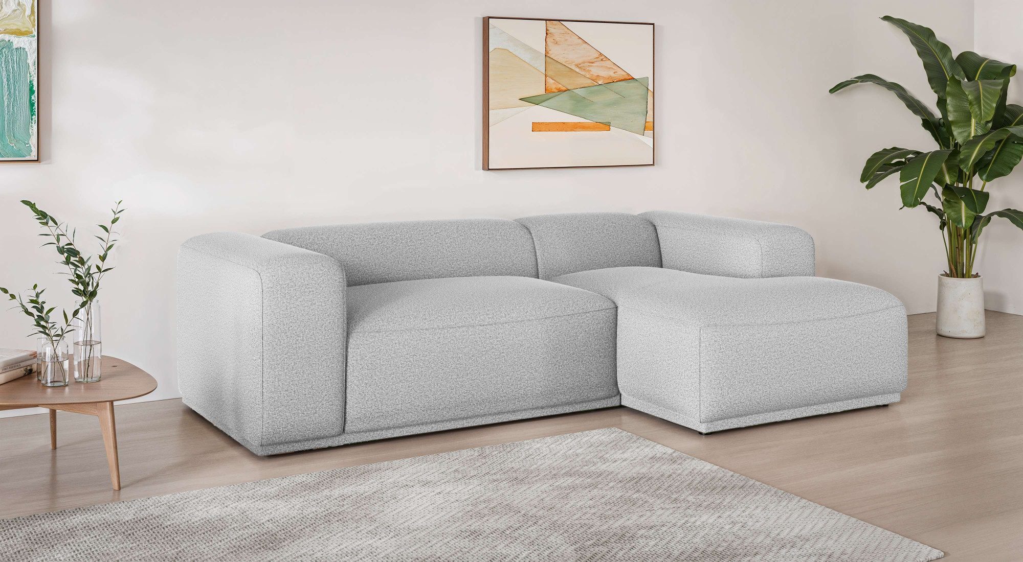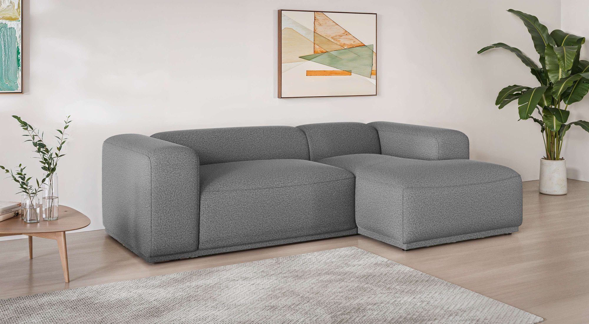 Du fragst dich, wie sich das Möbelstück kombinieren lässt? Hier eine kleine Inspiration für dich: Die Ästhetik des modernen Stils ist reduziert und strahlt eine schlichte Eleganz aus. Noch gemütlicher wird es zum Beispiel mit Wohn-Accessoires in Pastellfarben oder neutralen Farbtönen wie Beige, Anthrazit oder Weiß.