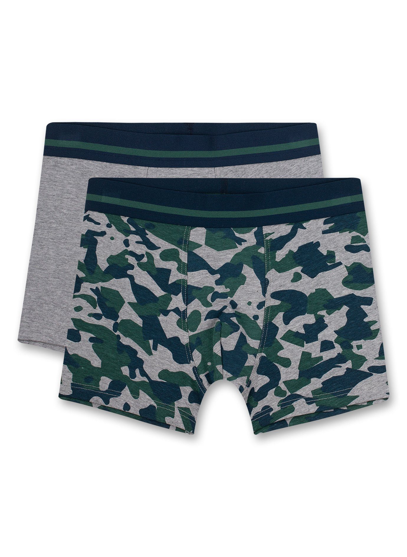 s.Oliver Jungen 2er Pack Boxershorts grau + grün camouflage Doppelpack Shorts in grau und grün camouflage, Unterhosen mit breitem Gummizugbund mit Streifen