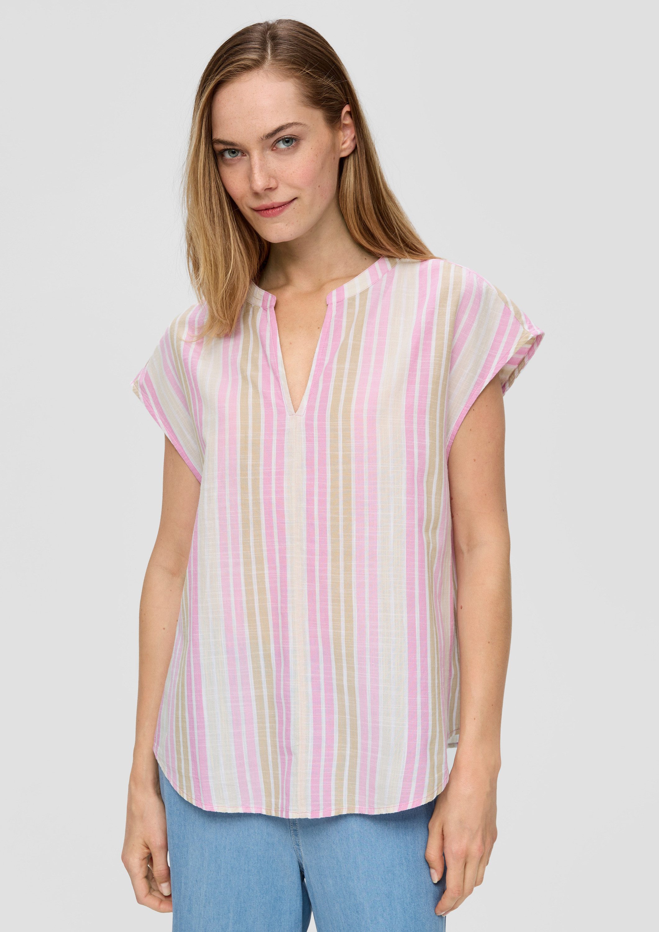 Schnittform Длина | Baumwollbluse mit Tunika-Ausschnitt im Relaxed Fit |