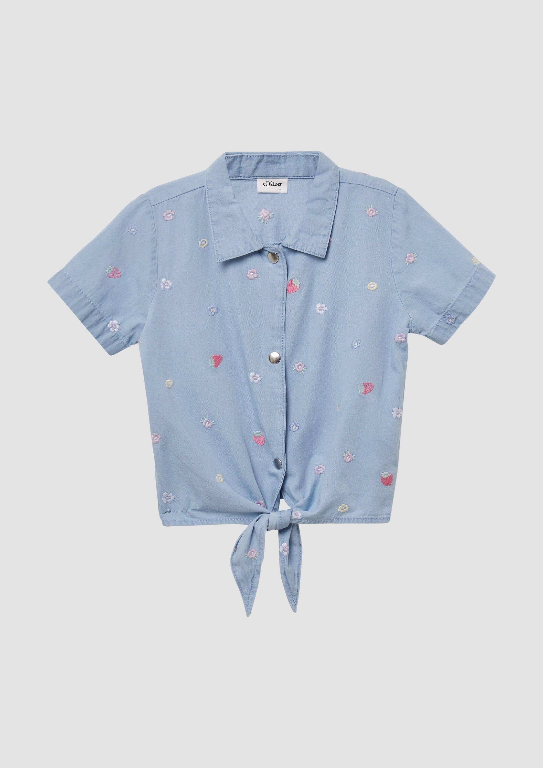 Schnittform Длина | Gewaschene Bluse aus Denim mit All-over-Stickerei |