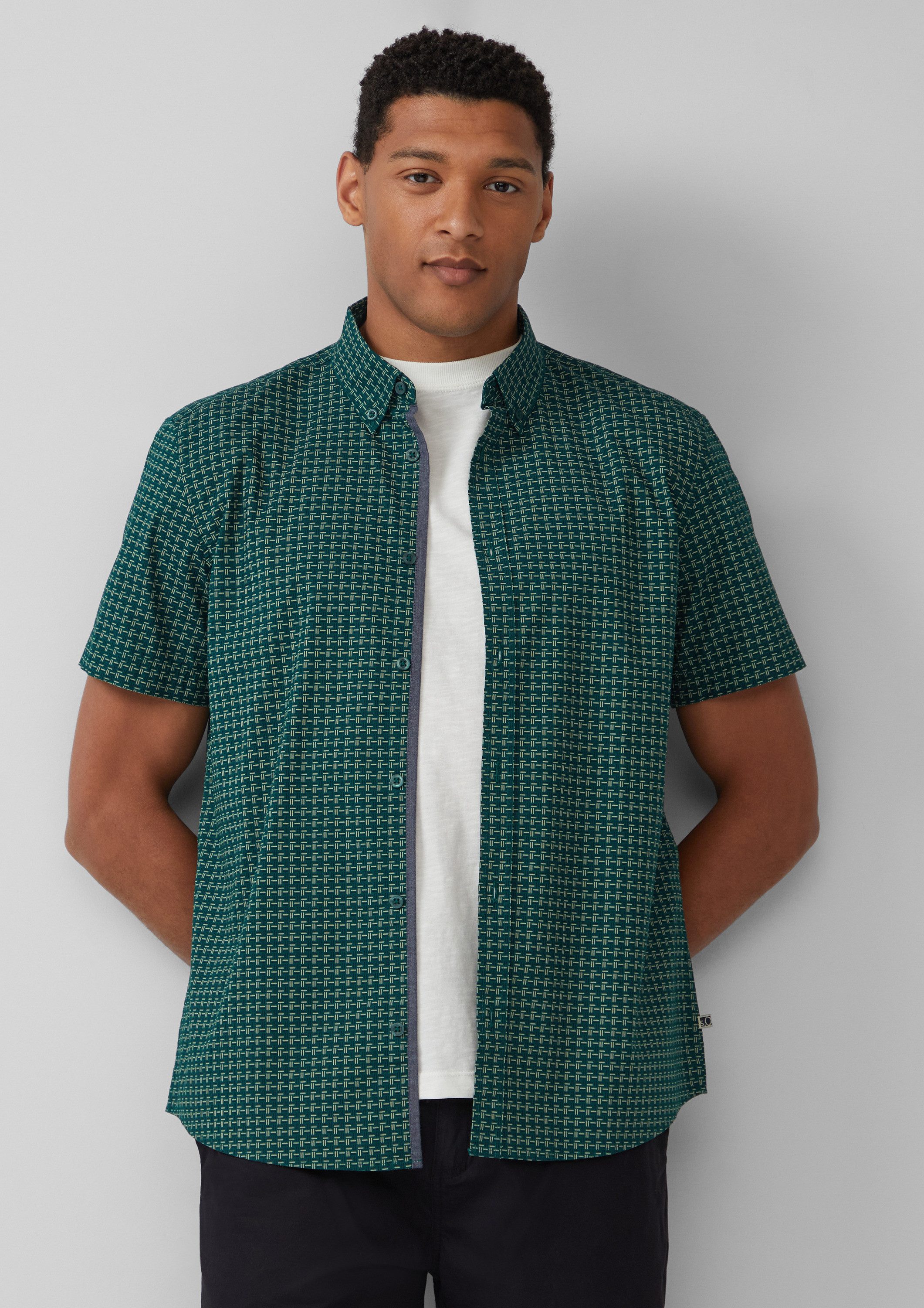 Lass dich von diesem Kurzarmhemd von s.Oliver zu neuen Styles inspirieren, die im Gedächnis bleiben: Auch wenn der Rest vom Outfit schlicht ist, bringt das Hemd mit dem Karo-Muster Dynamik und Lässigkeit in den Look. Der Button-down-Kragen braucht keine Kragenstäbchen, da kleine Knöpfe die Kragenspitzen fixieren, für guten Halt sorgen und außerdem noch schicke Detailakzente setzen. Dieses Hemd ist taillenbedeckend sowie basic geschnitten, wodurch dein Oberkörper locker umspielt wird.