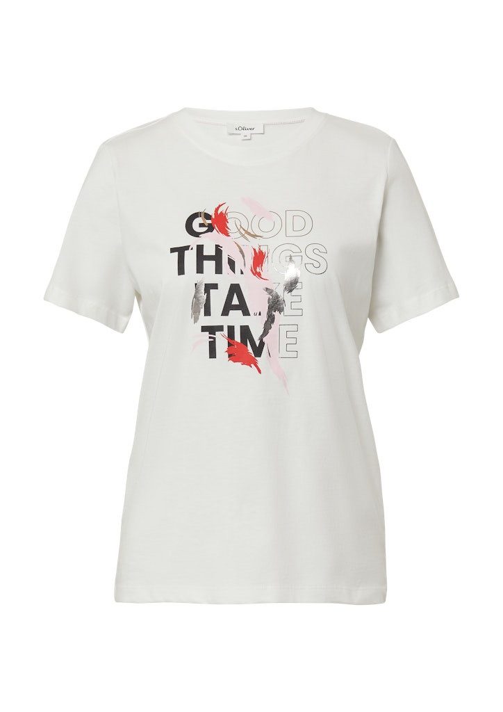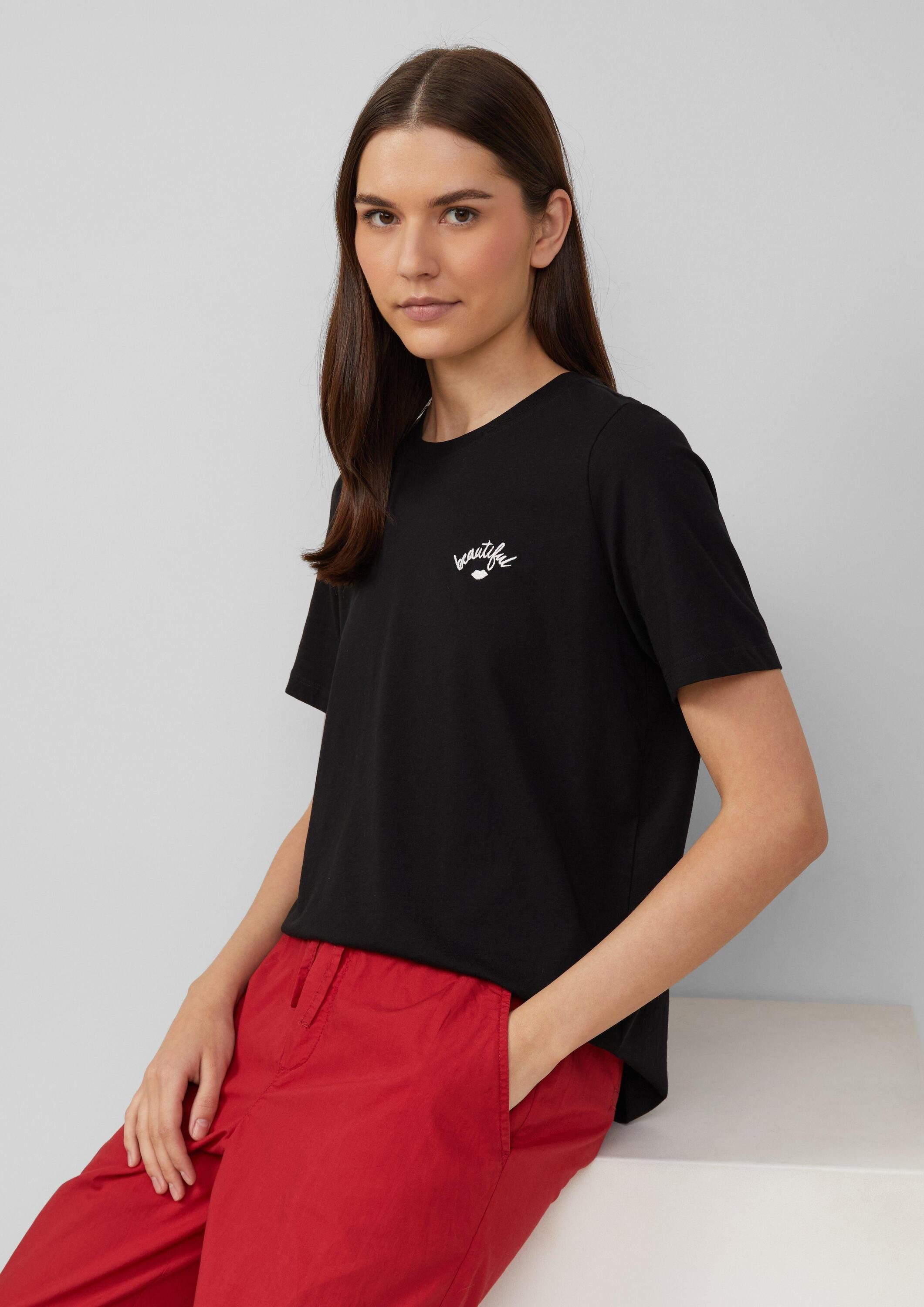 Schau dir das T-Shirt von s.Oliver mal genauer an. Es wirkt mit dem Markenlabel und dem Print lässig und peppig. Dieses Shirt hat einen Rundhalsausschnitt und ist taillenbedeckend sowie locker geschnitten, sodass du dich wohlfühlst.