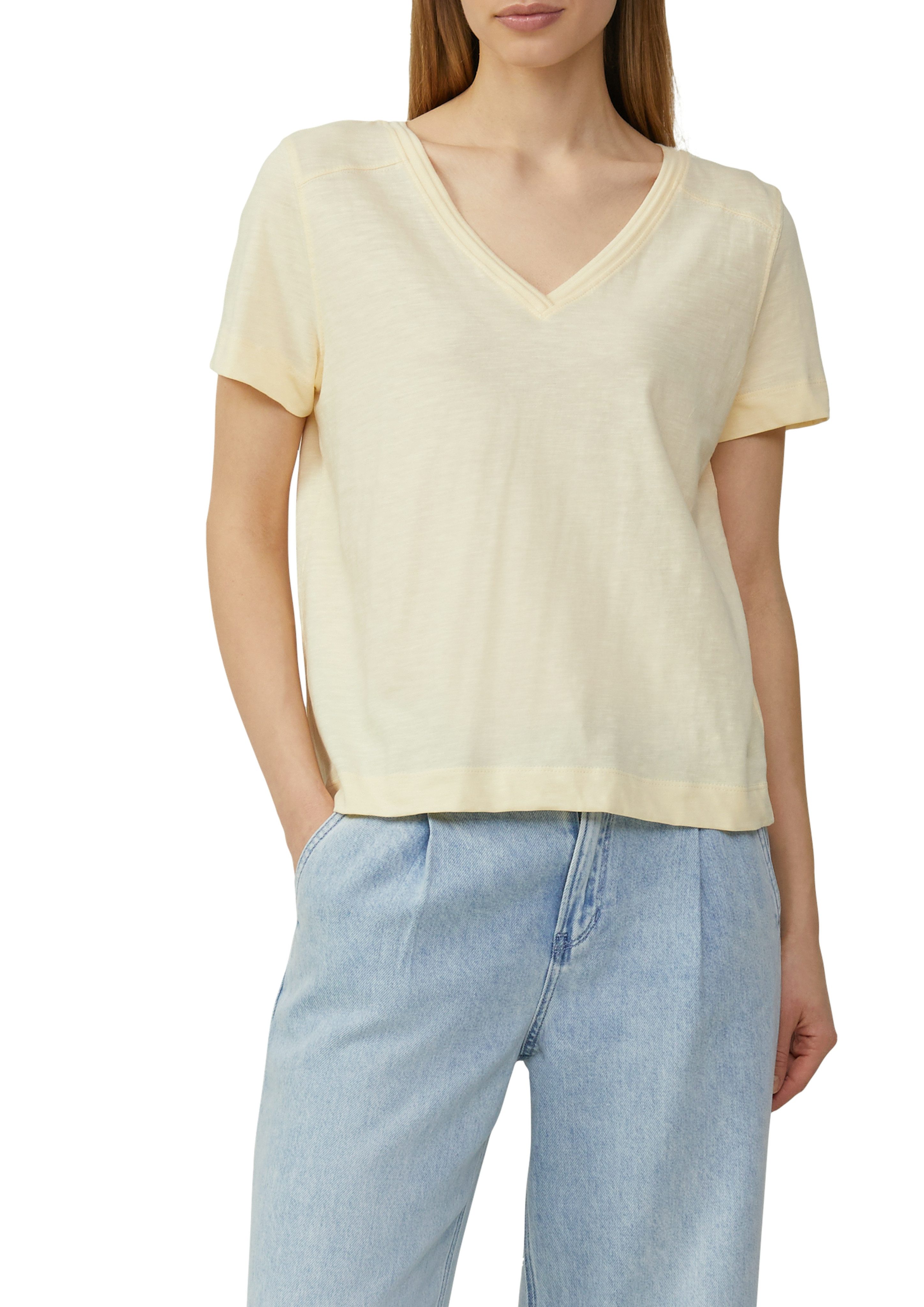 Gesucht und gefunden: Schau dir das T-Shirt von s.Oliver mal genauer an. Dieses Shirt hat einen V-Ausschnitt und ist taillenbedeckend sowie basic geschnitten und umspielt deinen Oberkörper locker.